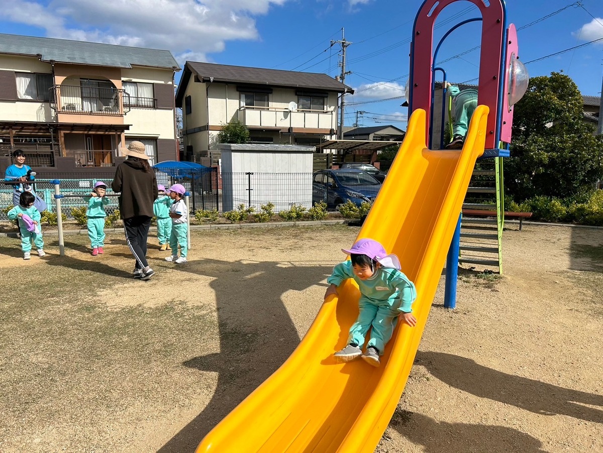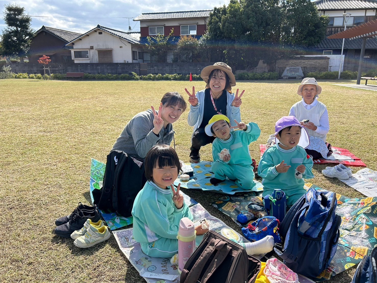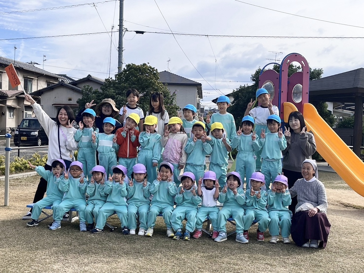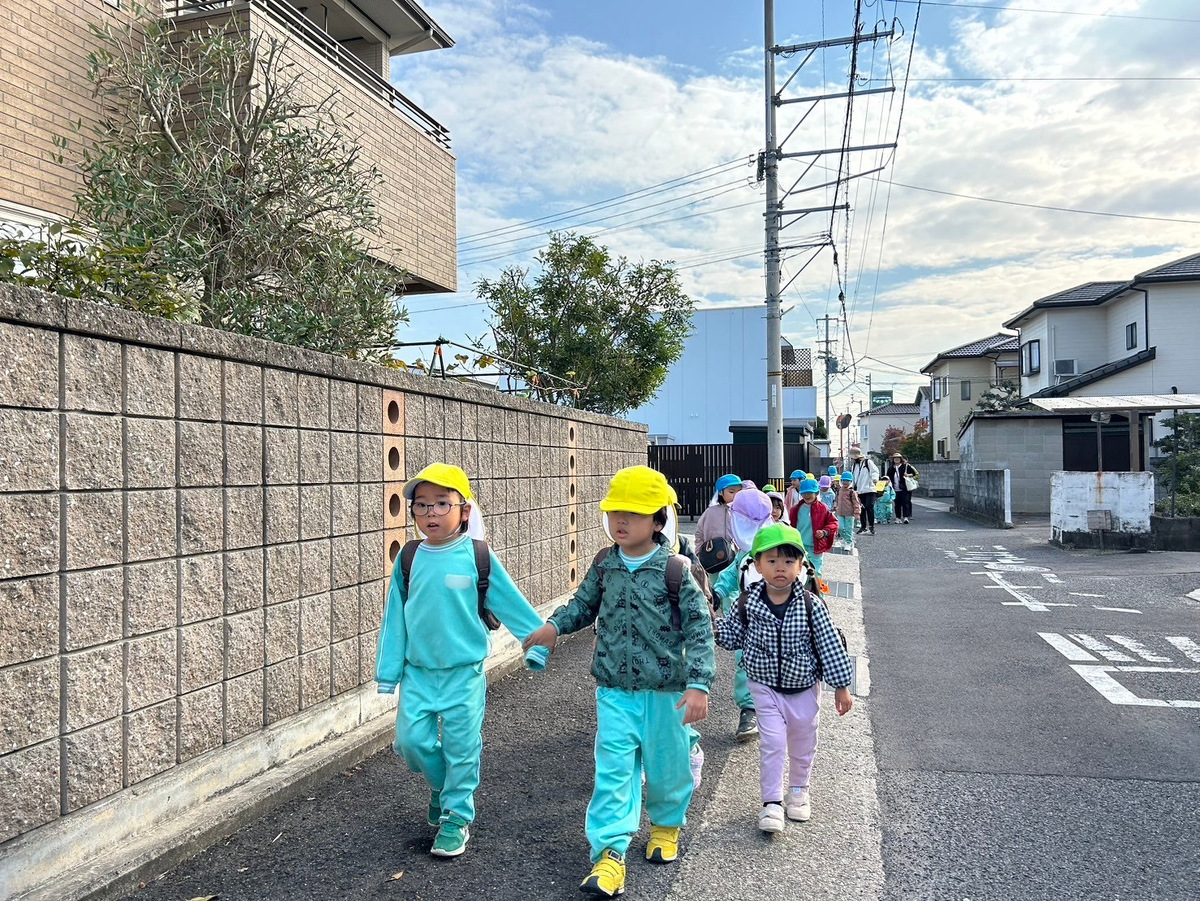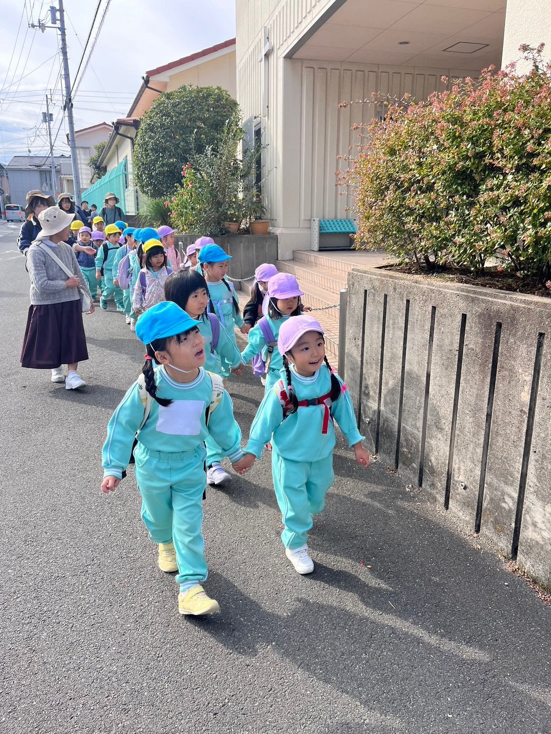 園外保育・遠足ごっこを行いました。 2024年12月10日(火) ABCグループ(3・4・5歳児)さんは太田南皿井公園までお出かけ、Dグループ(満3歳児)さんは、幼稚園の園庭で遠足ごっこをしました! 太田南皿井公園では、体操やかけっこをしたり縄跳びや遊具で遊んだり、たっぷり楽しみました♪ どのグループもみんな自分のレジャーシートを広げて、お友だちや先生と一緒に、おにぎりとおやつを食べました!みんなのお顔を見ながら食べられて嬉しかったですね♪ 秋の自然を感じたり、普段と少し違った体験をしたりして、とても楽しい1日になりました!