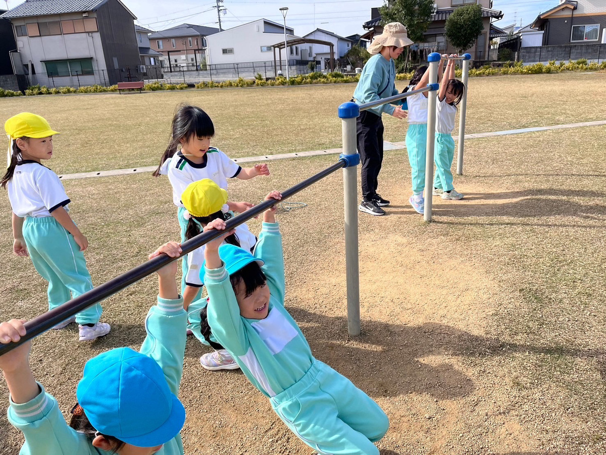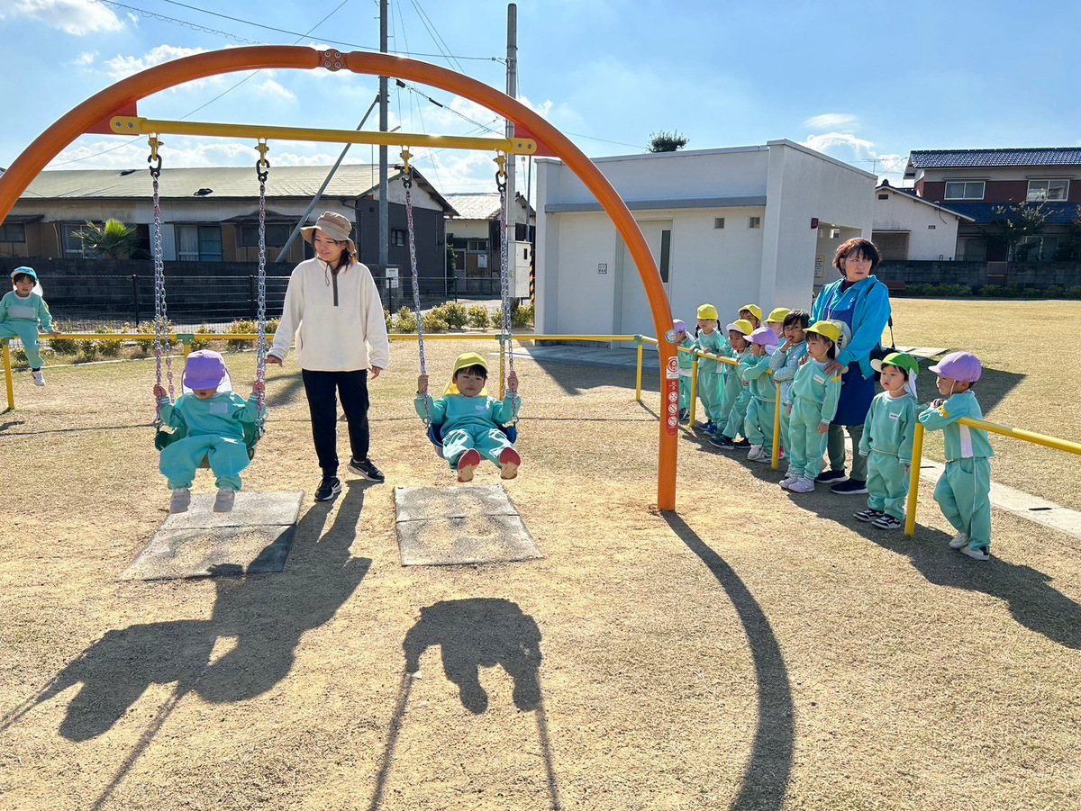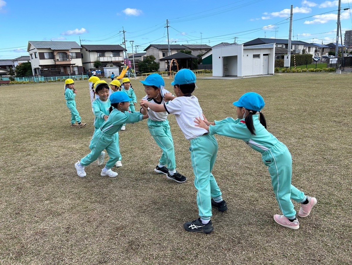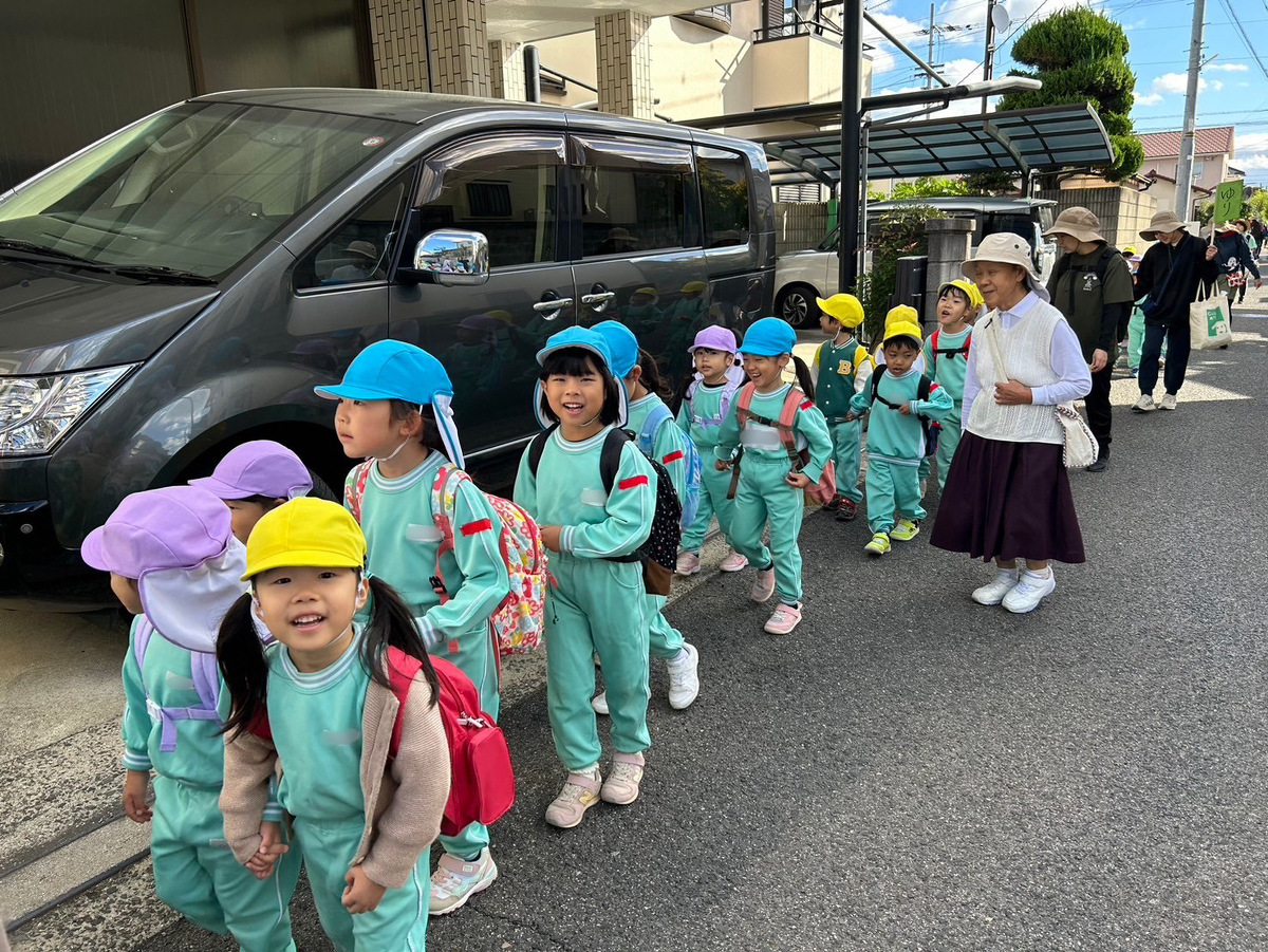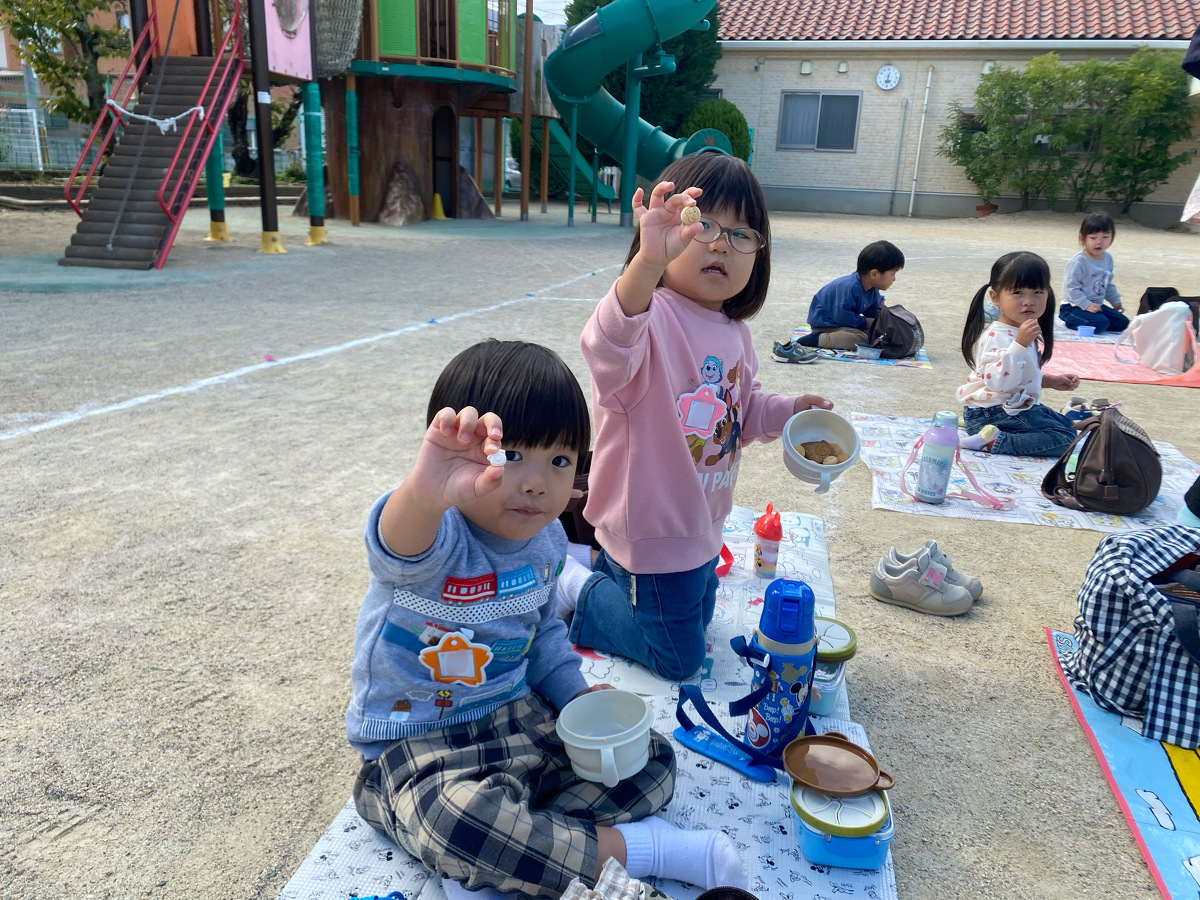 園外保育・遠足ごっこを行いました。 2024年12月10日(火) ABCグループ(3・4・5歳児)さんは太田南皿井公園までお出かけ、Dグループ(満3歳児)さんは、幼稚園の園庭で遠足ごっこをしました! 太田南皿井公園では、体操やかけっこをしたり縄跳びや遊具で遊んだり、たっぷり楽しみました♪ どのグループもみんな自分のレジャーシートを広げて、お友だちや先生と一緒に、おにぎりとおやつを食べました!みんなのお顔を見ながら食べられて嬉しかったですね♪ 秋の自然を感じたり、普段と少し違った体験をしたりして、とても楽しい1日になりました!