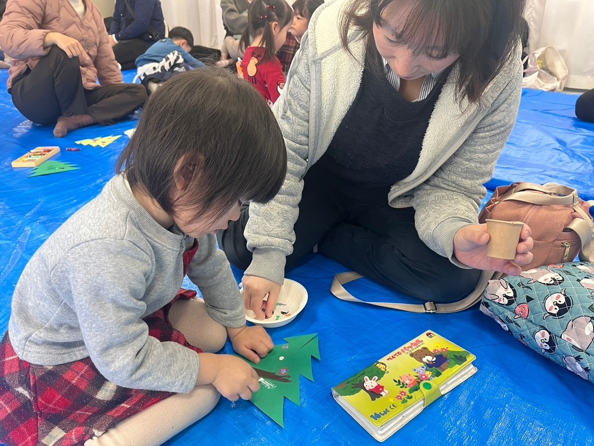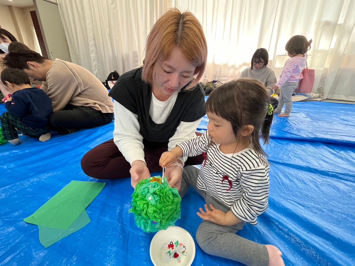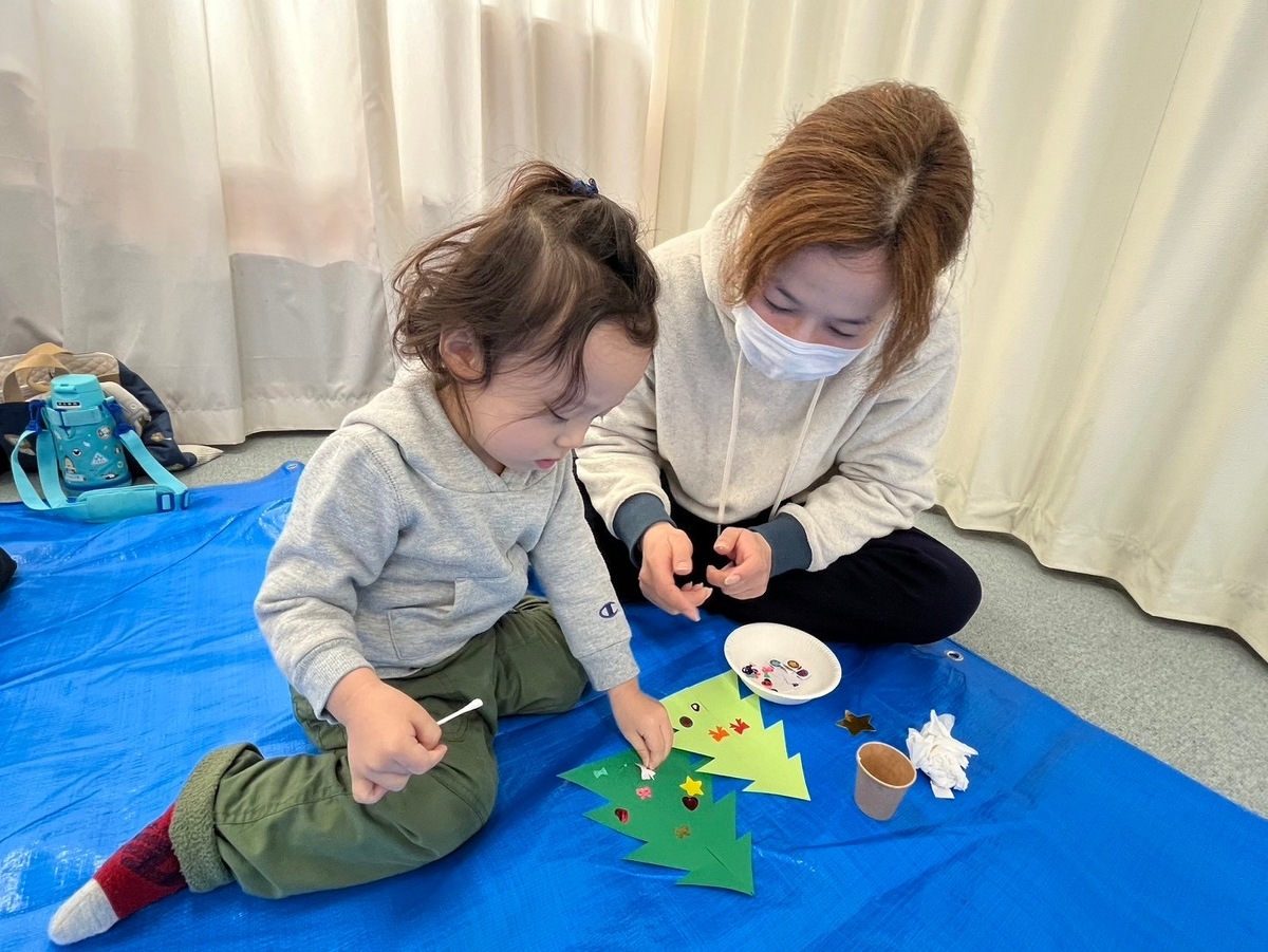 そして、お楽しみのクリスマスツリー作り!好きな飾りを自分で選んで取って、おうちの人と一緒に飾り付け!とっても可愛いクリスマスツリーが完成しました♡