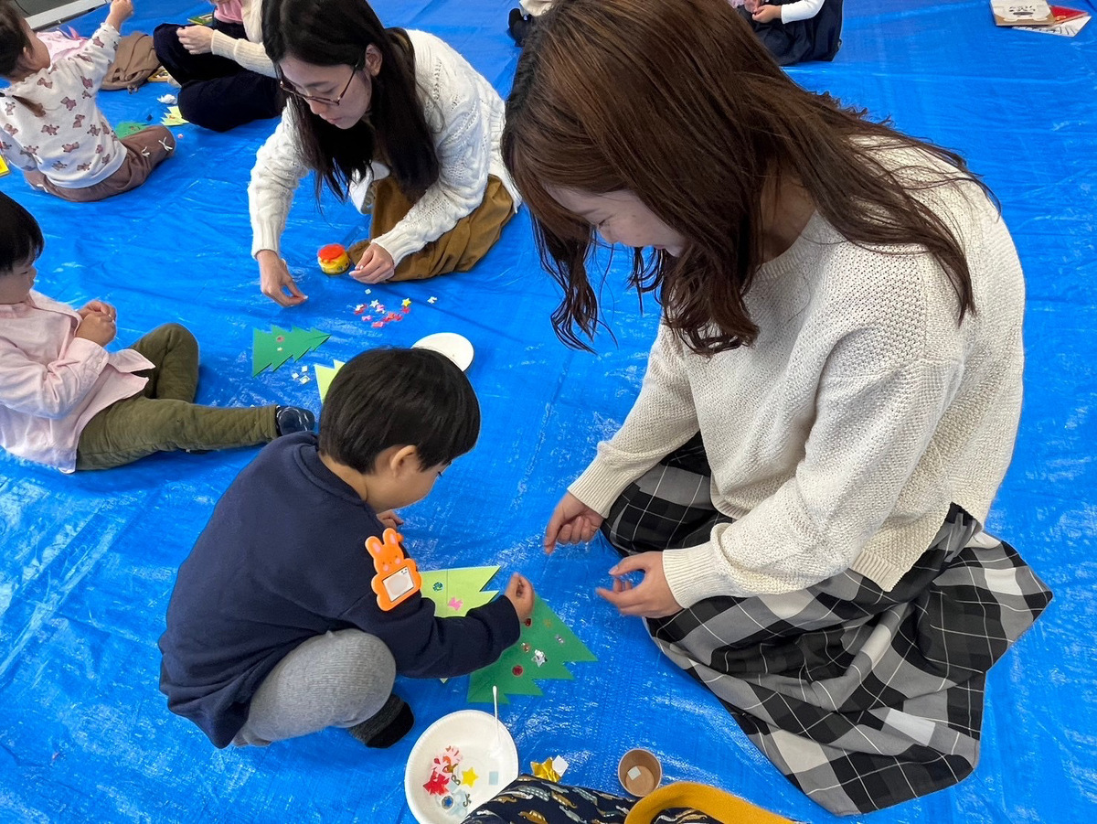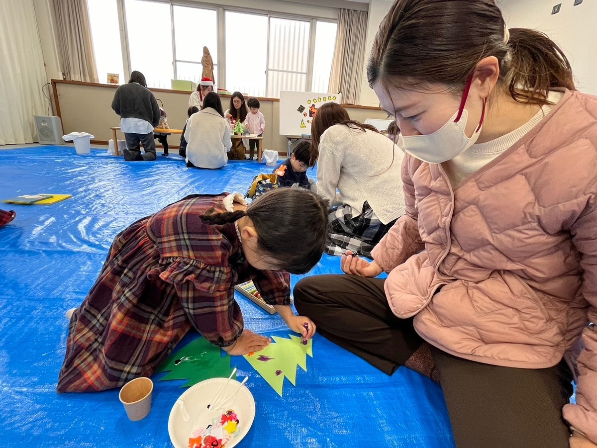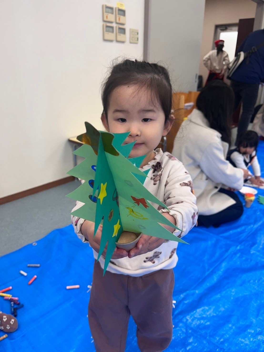 そして、お楽しみのクリスマスツリー作り!好きな飾りを自分で選んで取って、おうちの人と一緒に飾り付け!とっても可愛いクリスマスツリーが完成しました♡