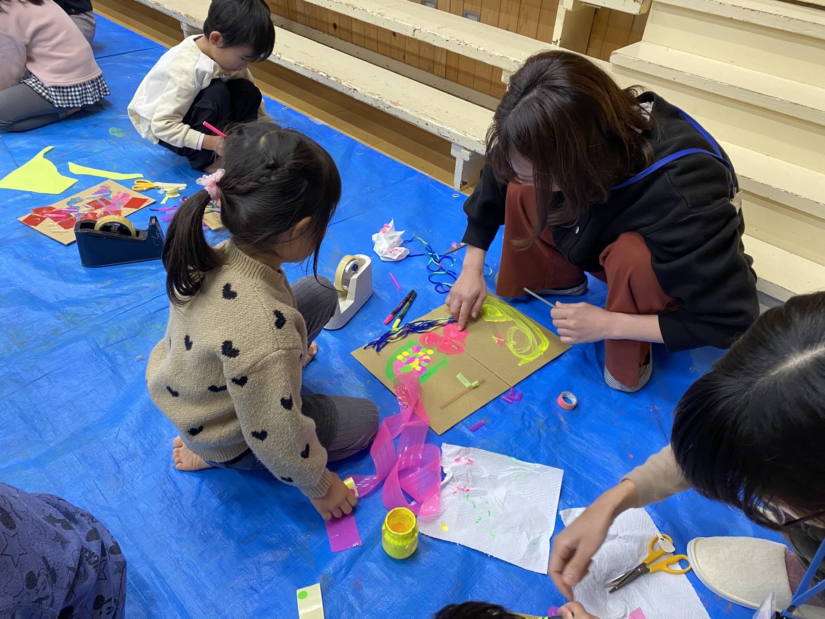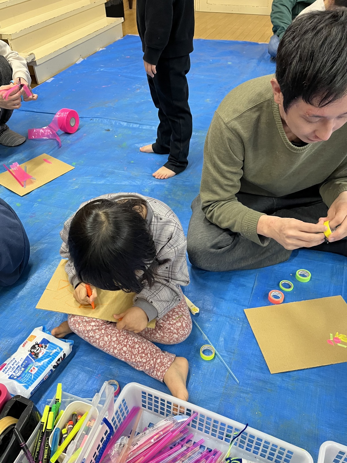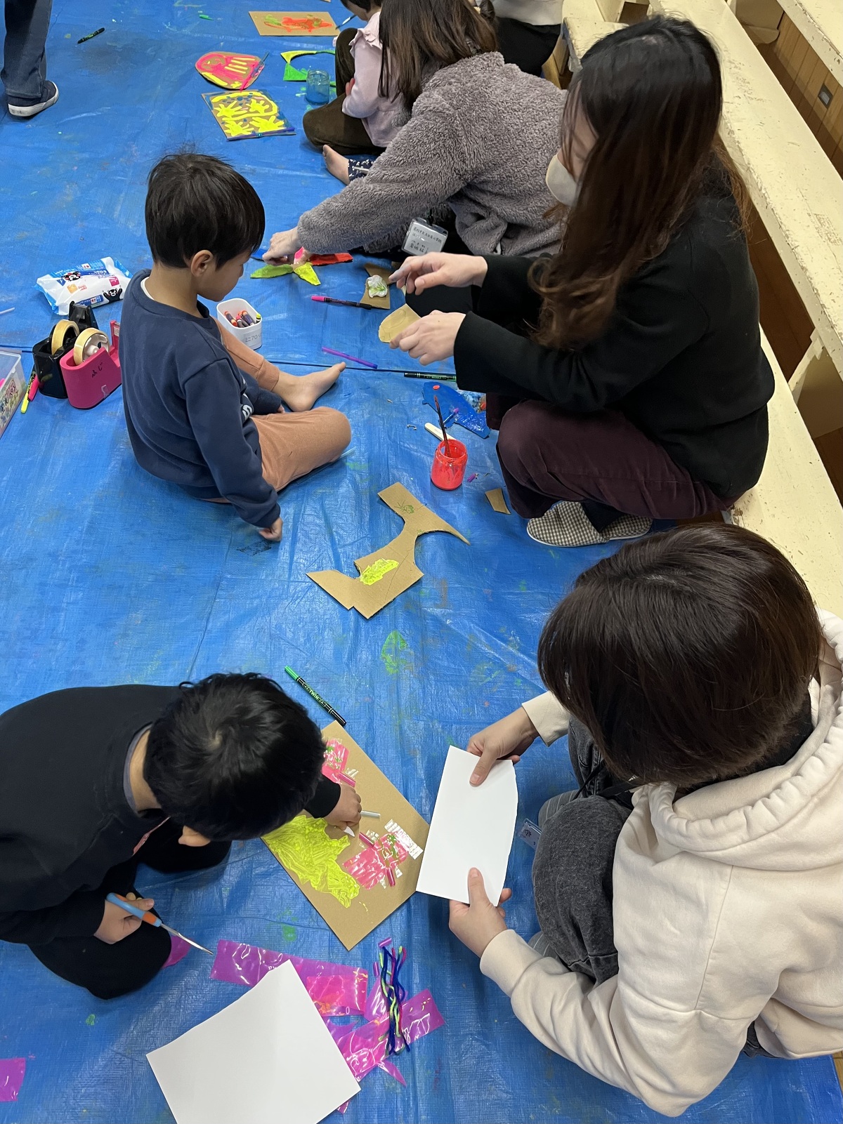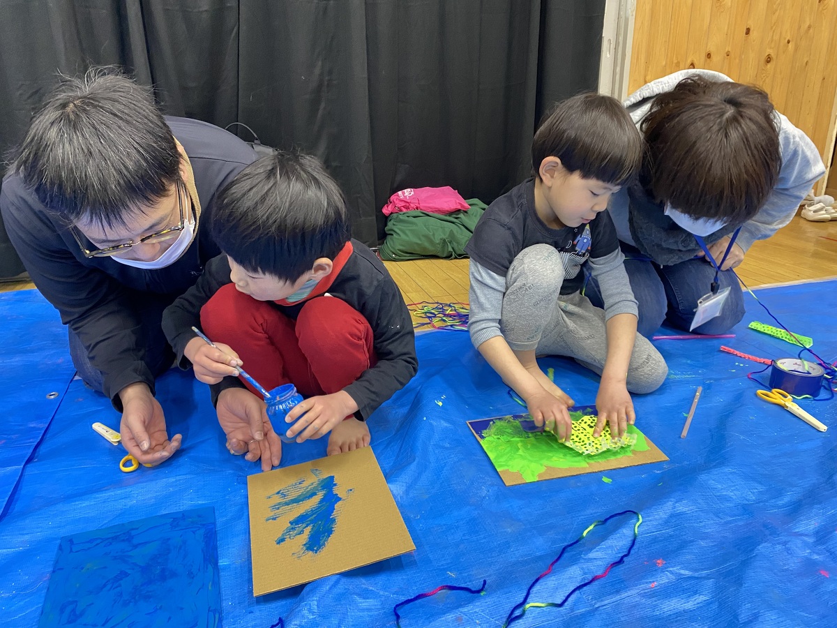 Bグループ(4歳児)のアートの日がありました。今年度の締めくくりとして親子で行いました!おうちの人と一緒に楽しみましたね♪