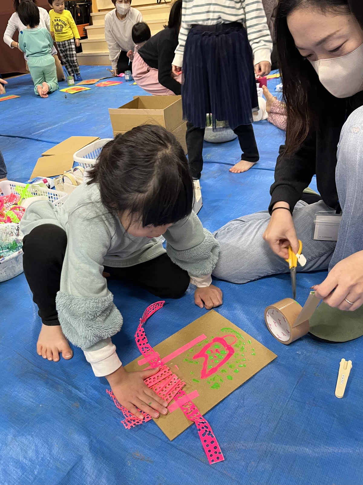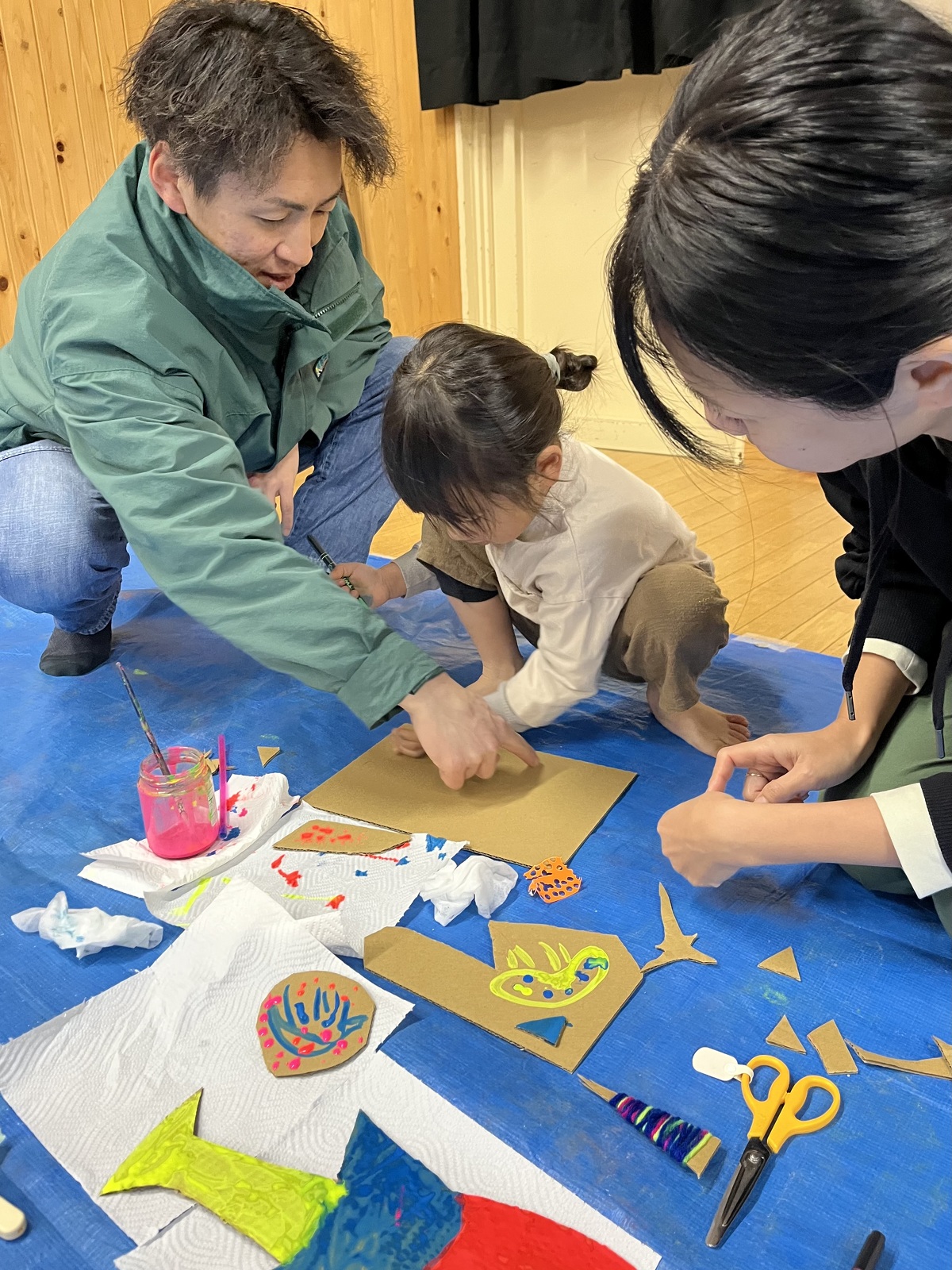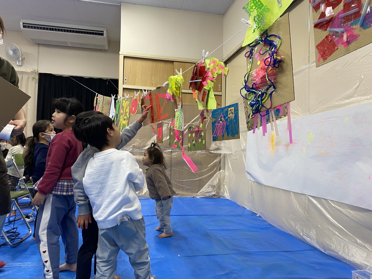 Bグループ(4歳児)のアートの日がありました。今年度の締めくくりとして親子で行いました!おうちの人と一緒に楽しみましたね♪
