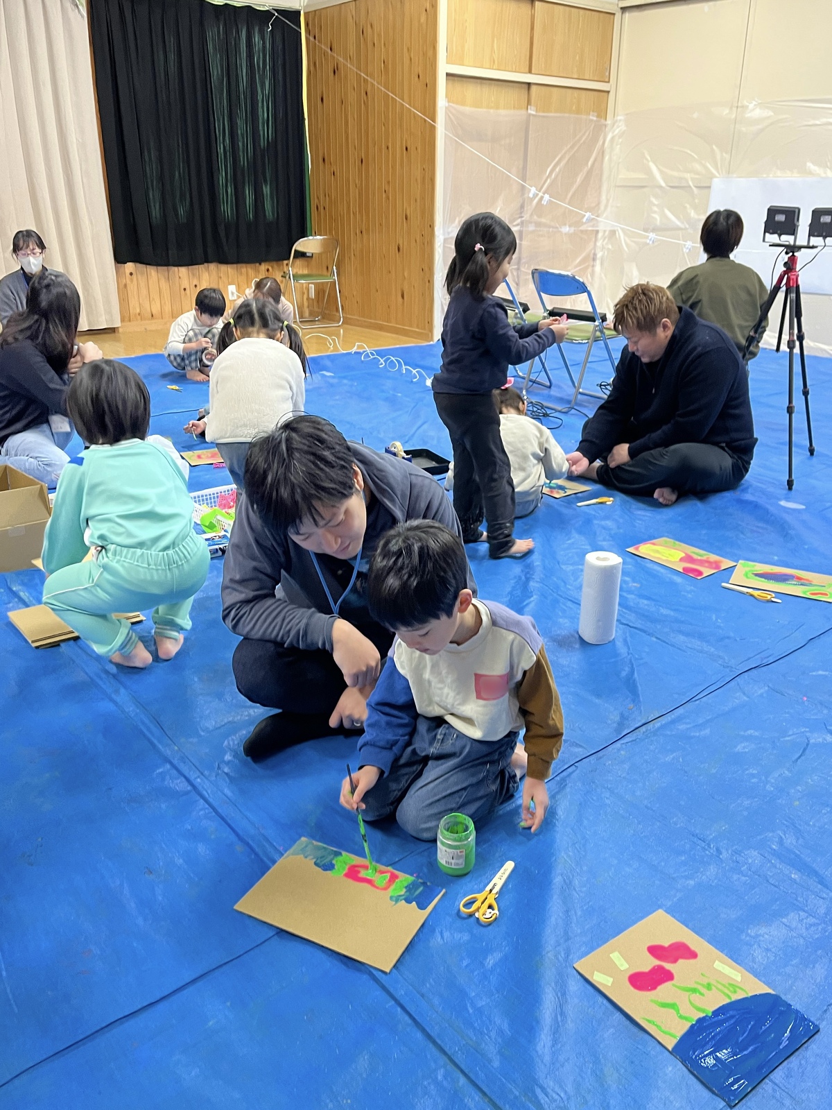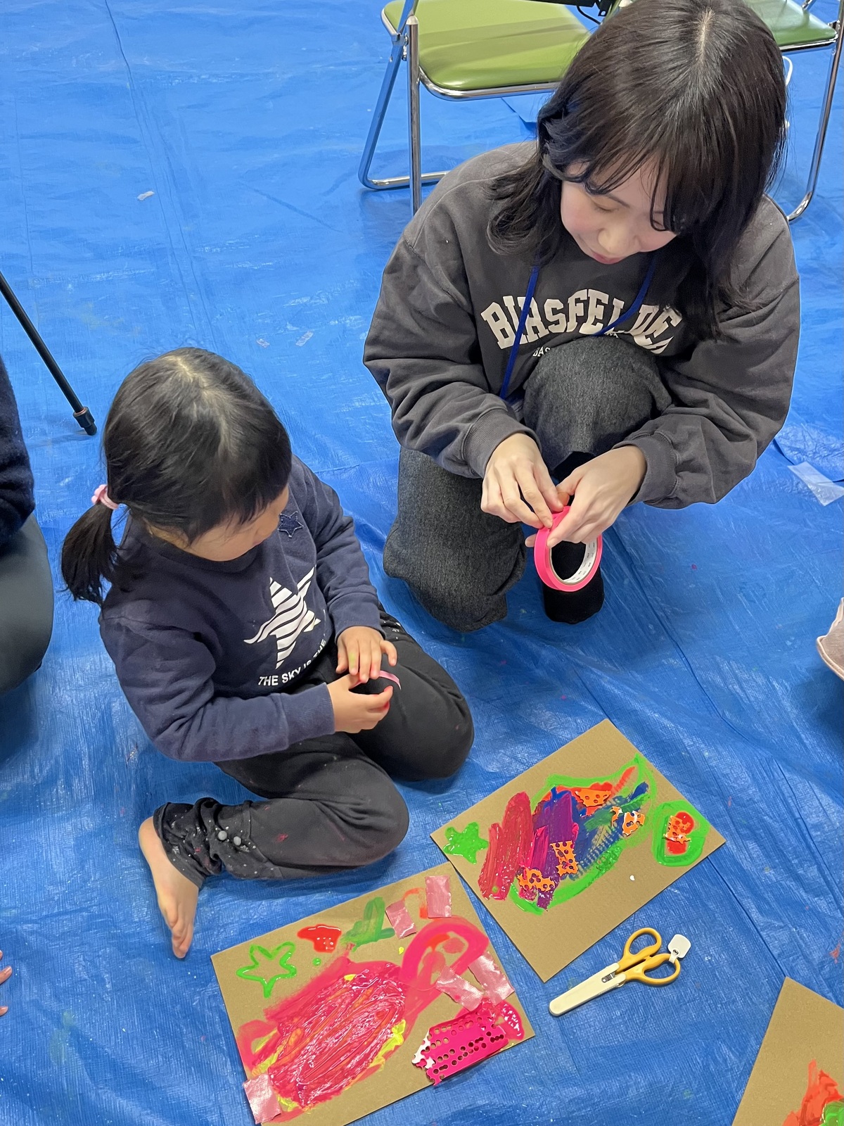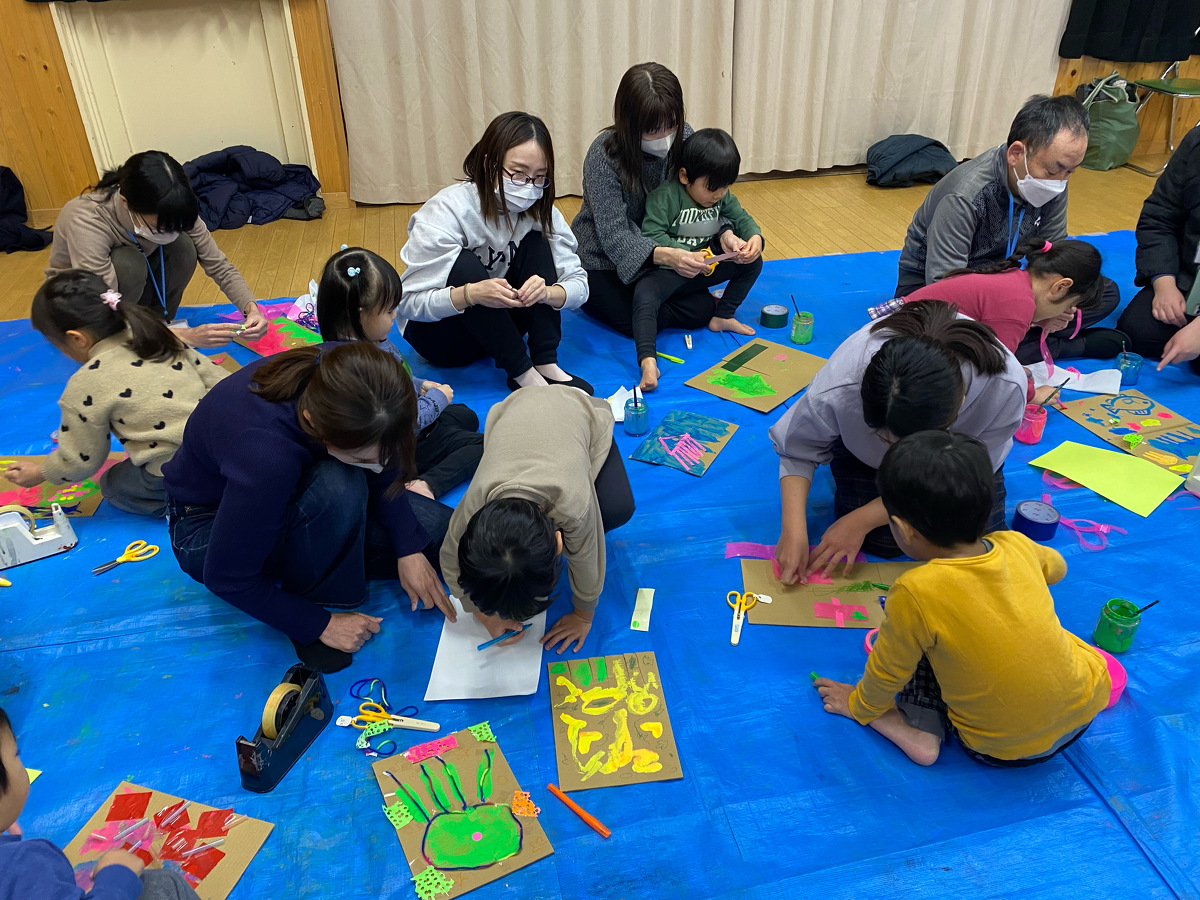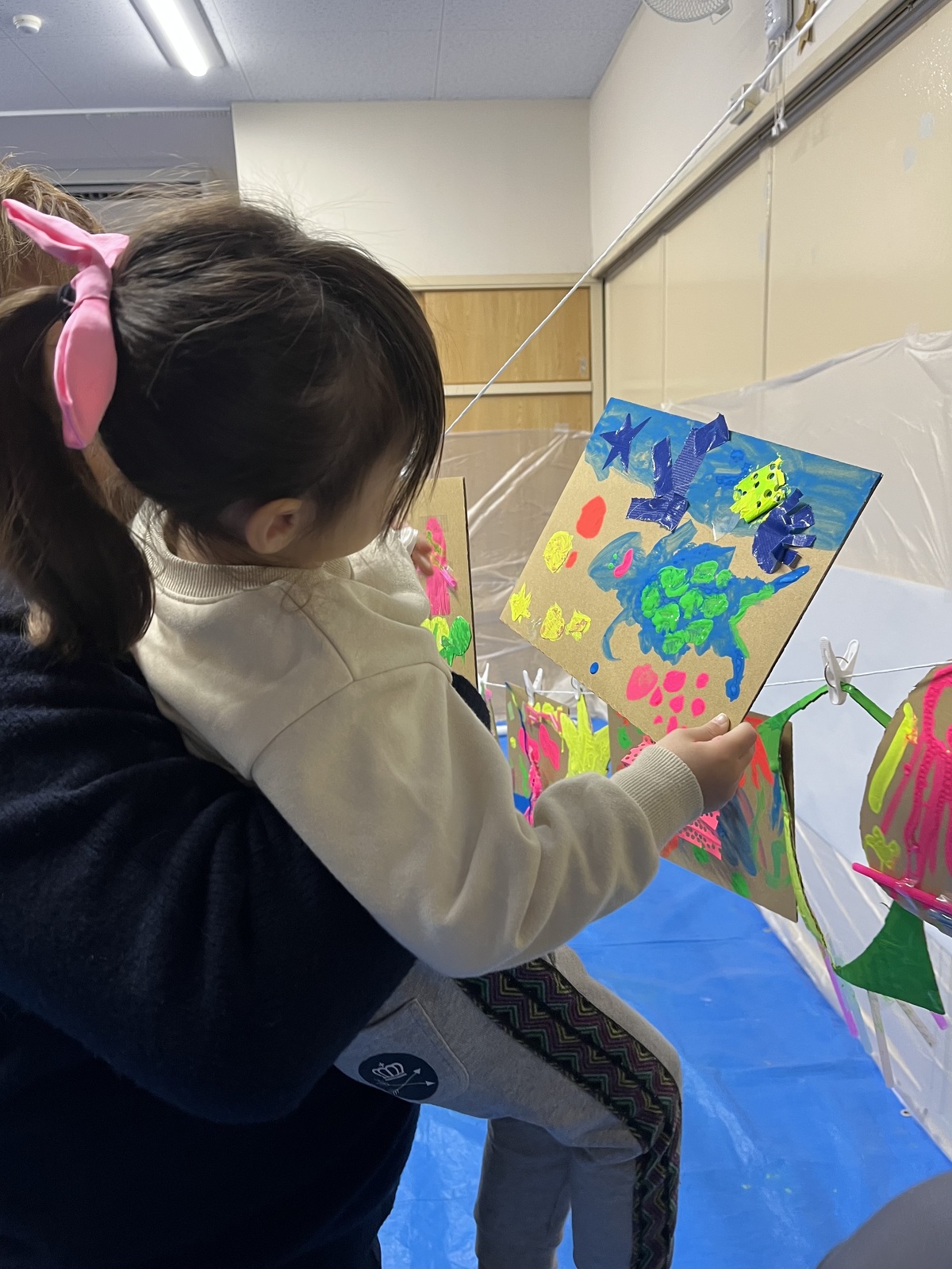 Bグループ(4歳児)のアートの日がありました。今年度の締めくくりとして親子で行いました!おうちの人と一緒に楽しみましたね♪