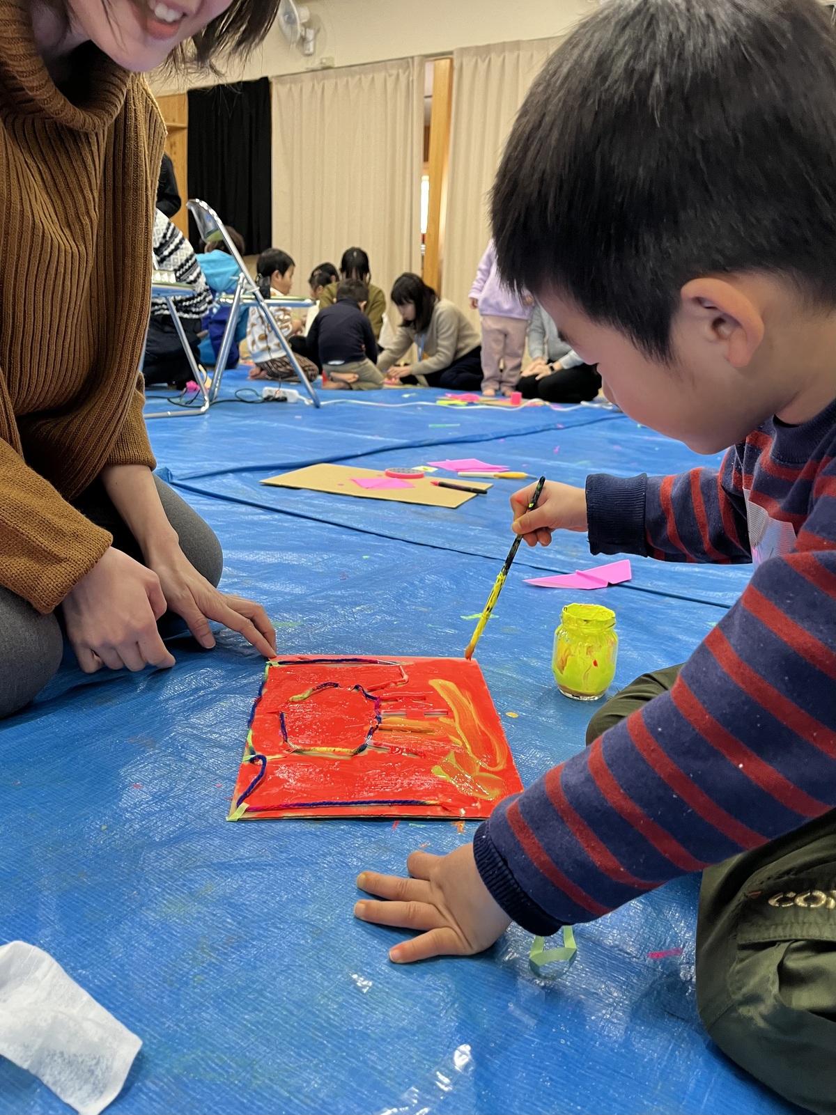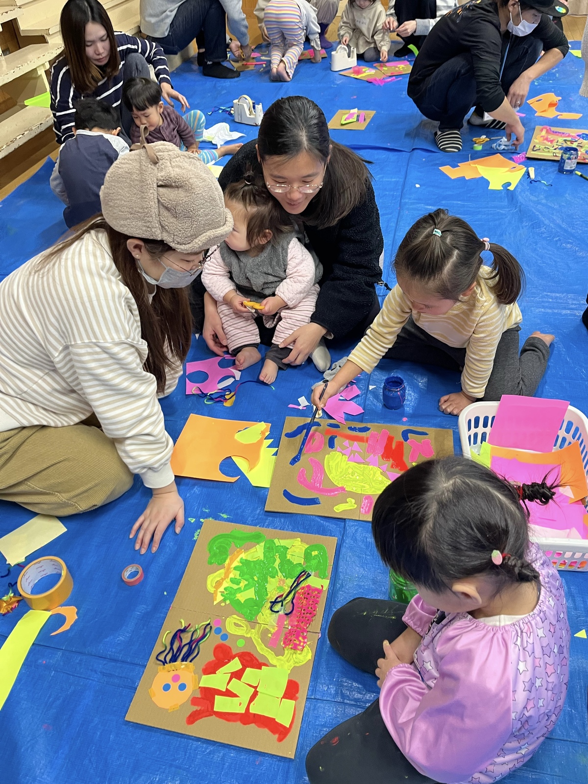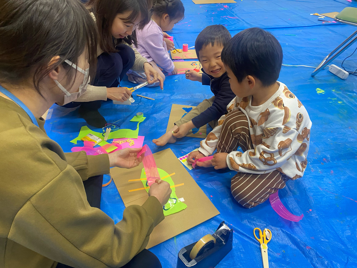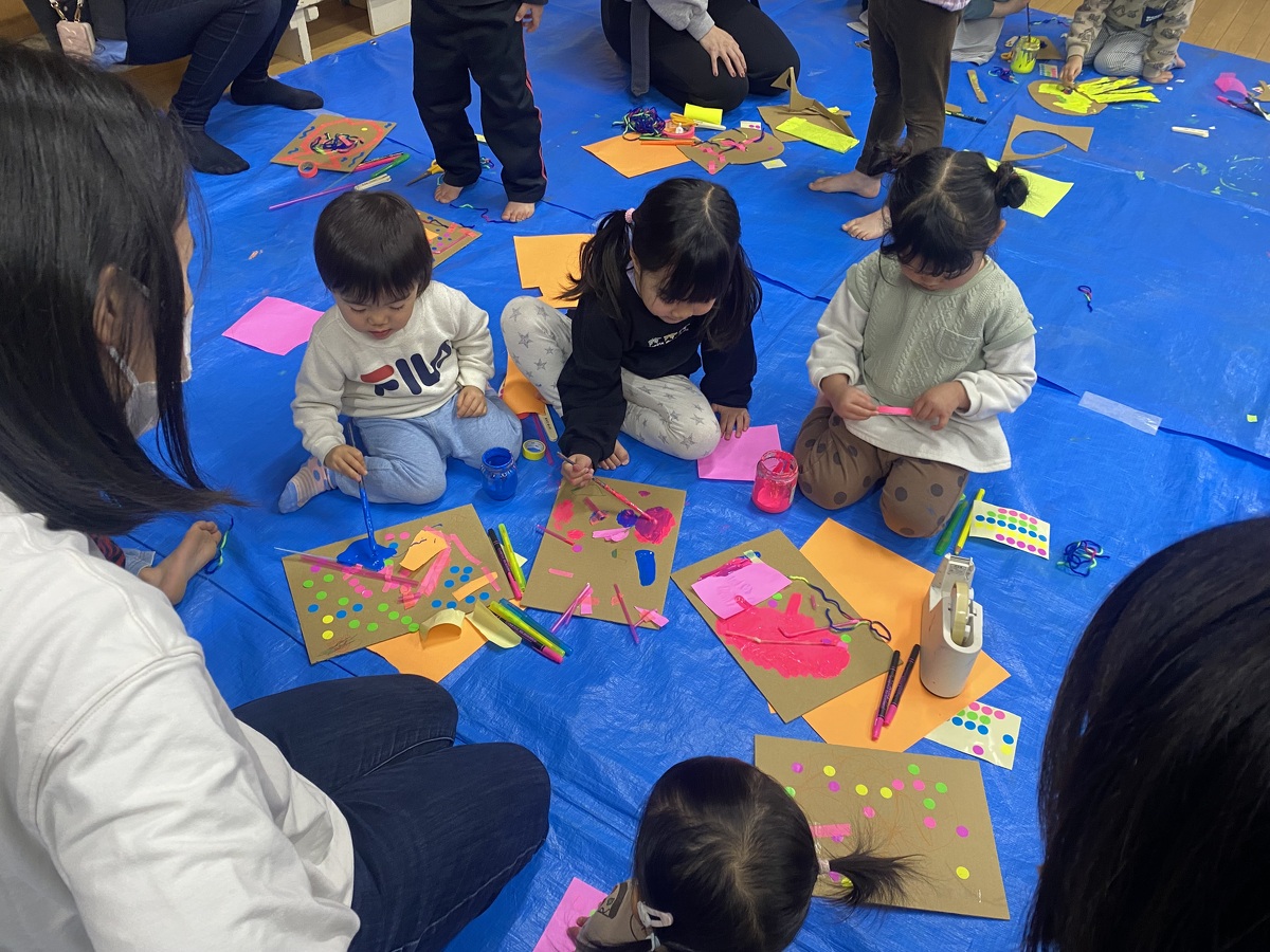 Cグループ(3歳児)のアート参観がありました。 2025年01月20日(月) Cグループ(3歳児)のアートの日がありました。Bグループと同じく、親子で行いました!いつもは体験できないことを楽しみました♪ 後藤先生、Bグループに引き続き、楽しい時間をありがとうございました!