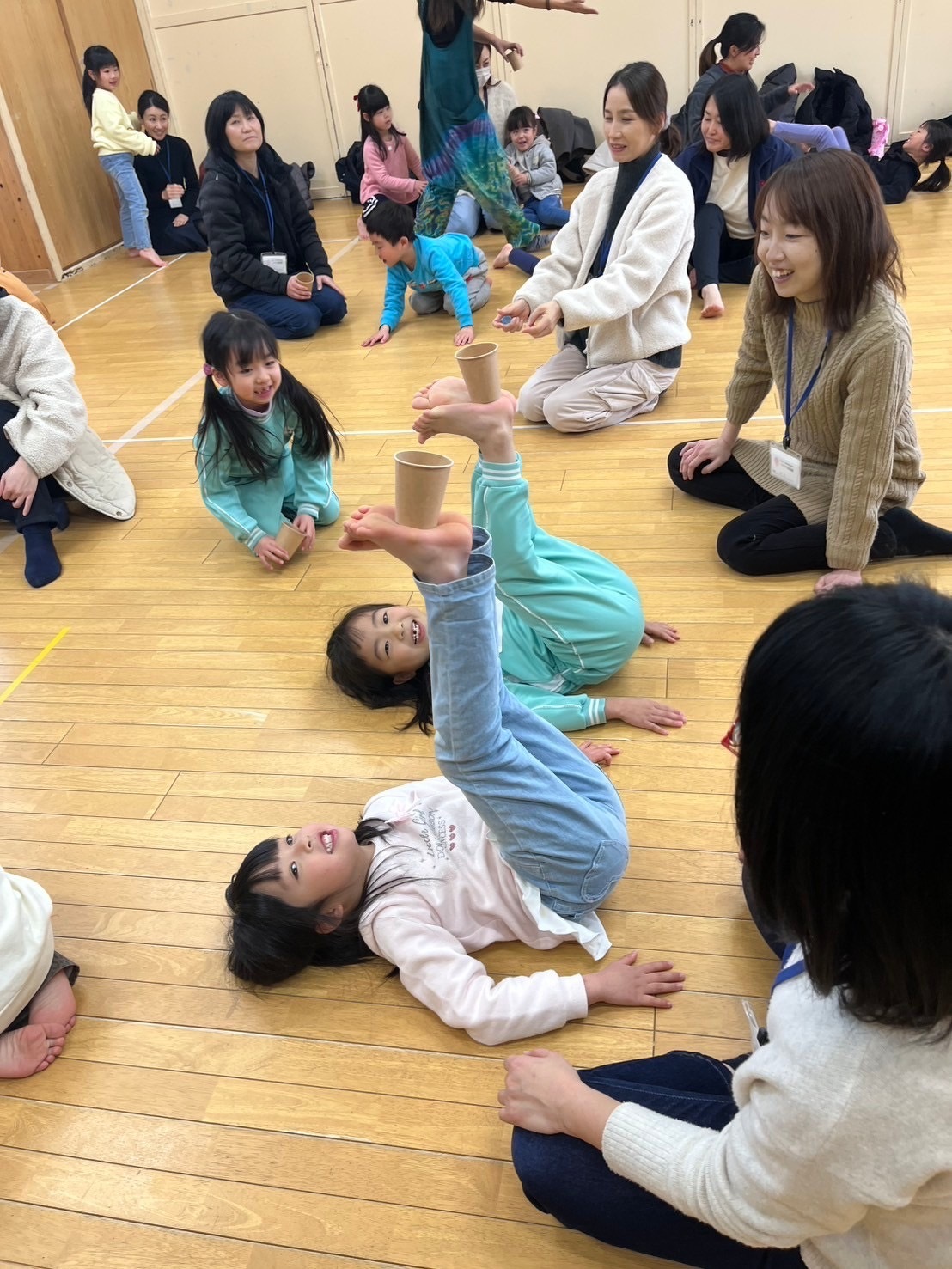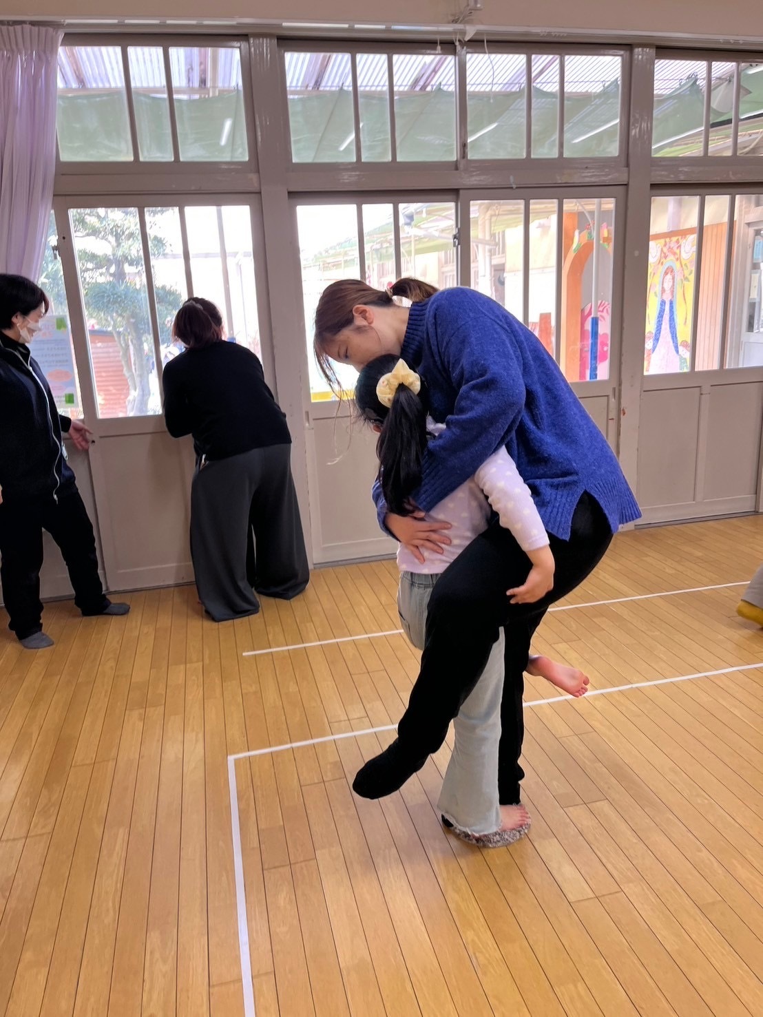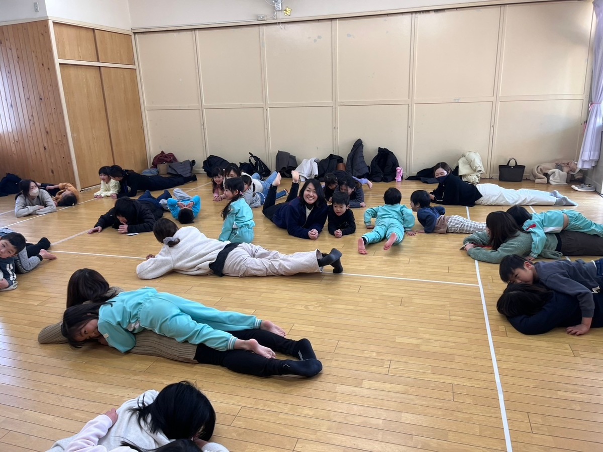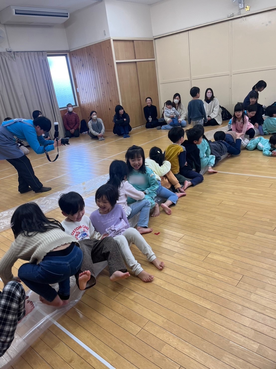 Aグループ(5歳児)アートの日の参観がありました。 2025年02月27日(木) Aグループ(5歳児)の、最後のアートの日がありました。最後の締めくくりとして、親子で行いました!聴覚支援学校のお友だちとも最後の交流で、おうちの人と一緒に身体表現を楽しみました♪ みきゆき先生、1年間素敵な時間をありがとうございました