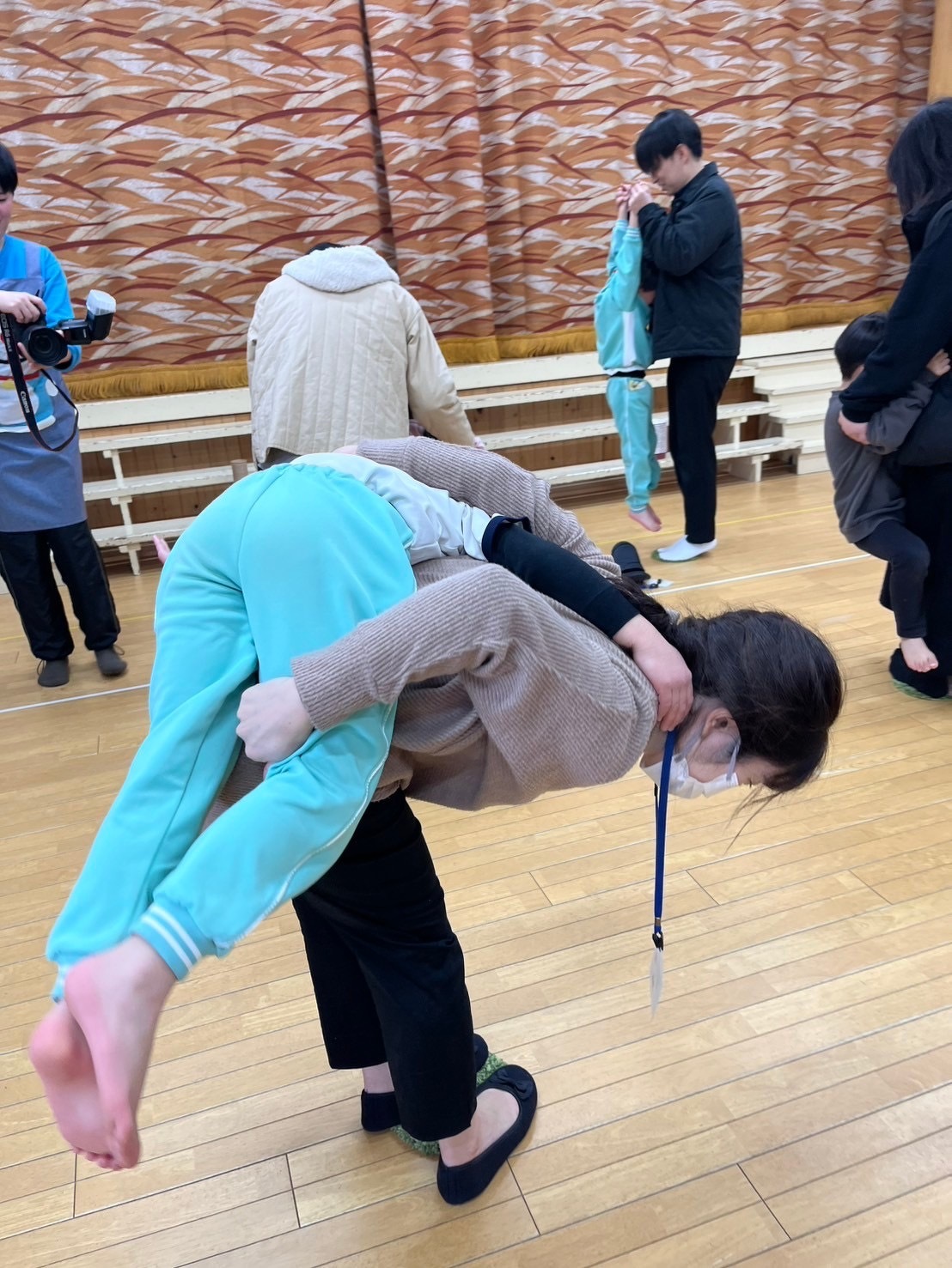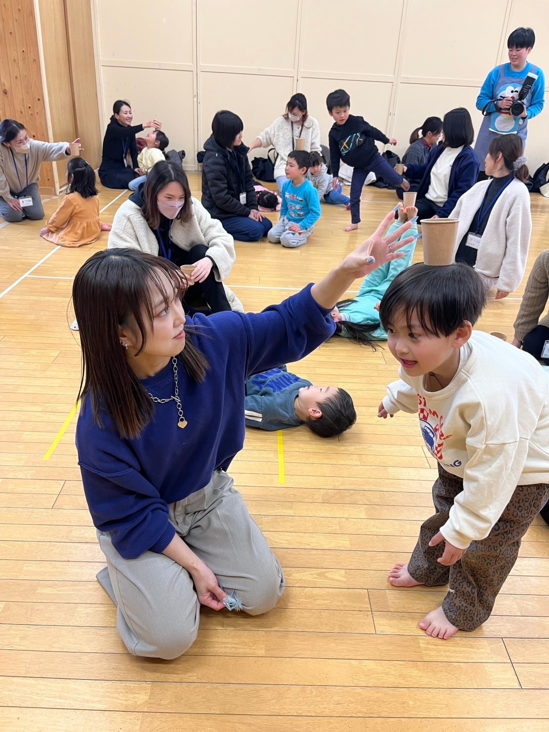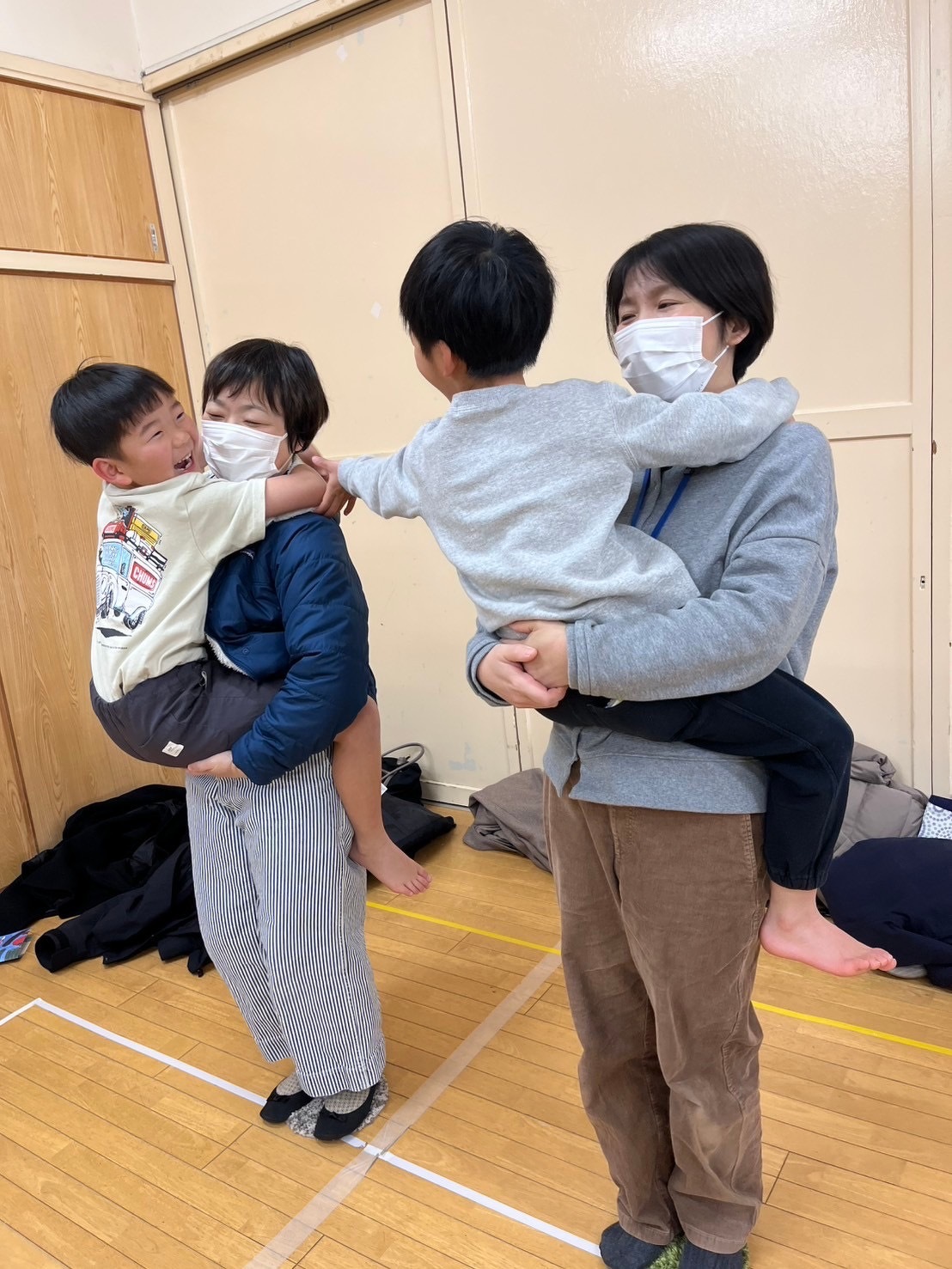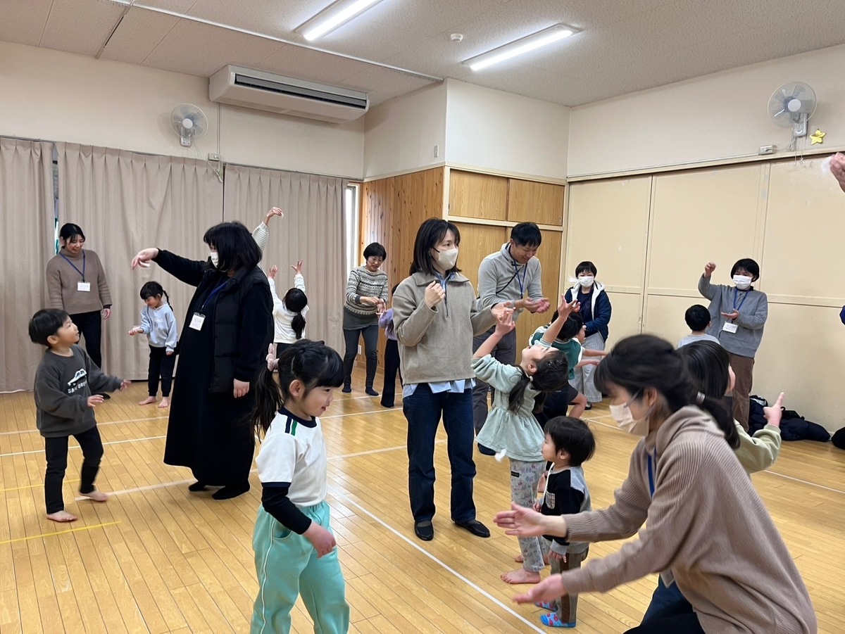 Aグループ(5歳児)アートの日の参観がありました。 2025年02月27日(木) Aグループ(5歳児)の、最後のアートの日がありました。最後の締めくくりとして、親子で行いました!聴覚支援学校のお友だちとも最後の交流で、おうちの人と一緒に身体表現を楽しみました♪ みきゆき先生、1年間素敵な時間をありがとうございました