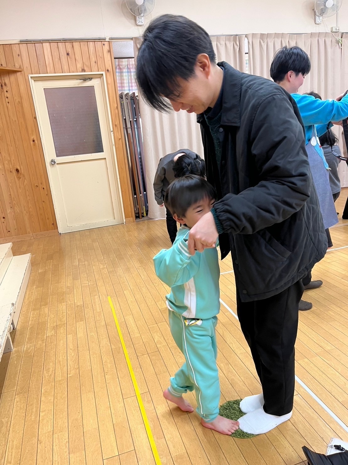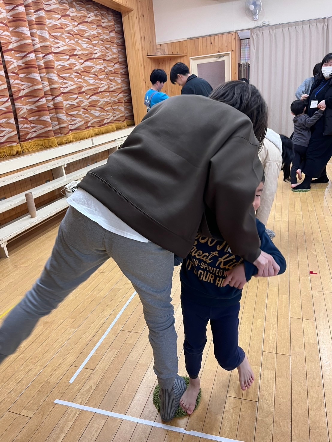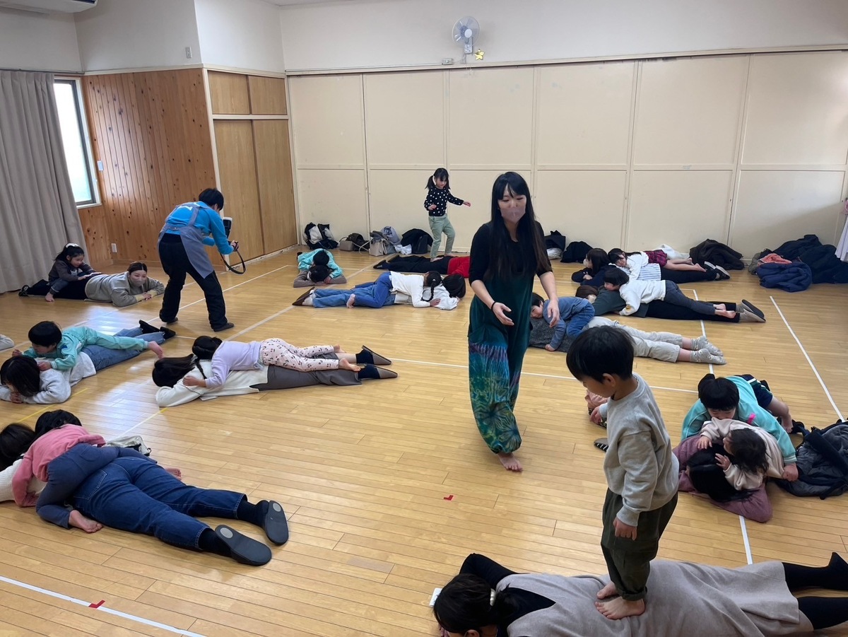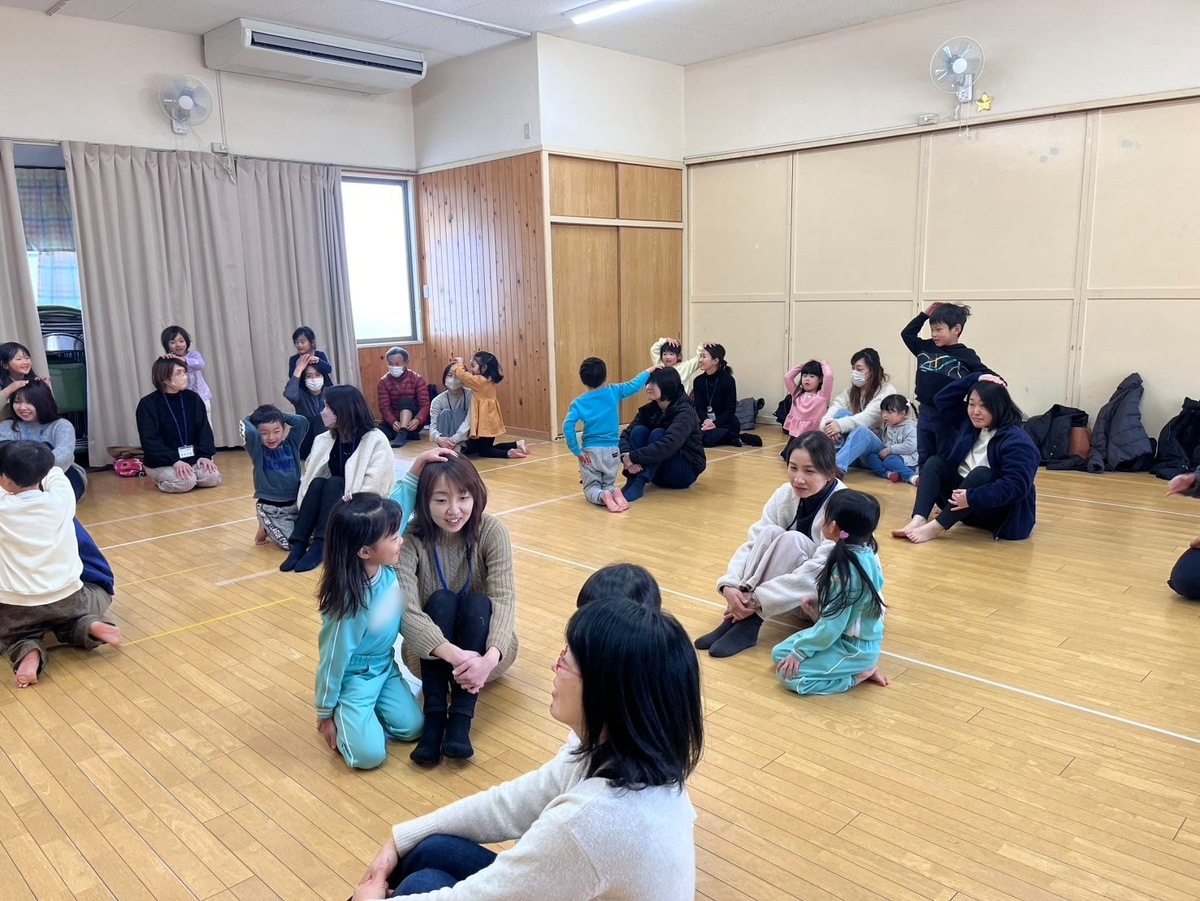 Aグループ(5歳児)アートの日の参観がありました。 2025年02月27日(木) Aグループ(5歳児)の、最後のアートの日がありました。最後の締めくくりとして、親子で行いました!聴覚支援学校のお友だちとも最後の交流で、おうちの人と一緒に身体表現を楽しみました♪ みきゆき先生、1年間素敵な時間をありがとうございました