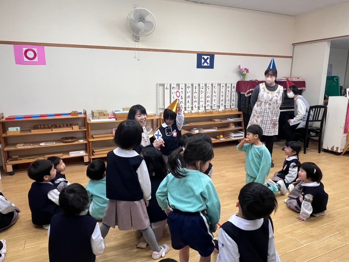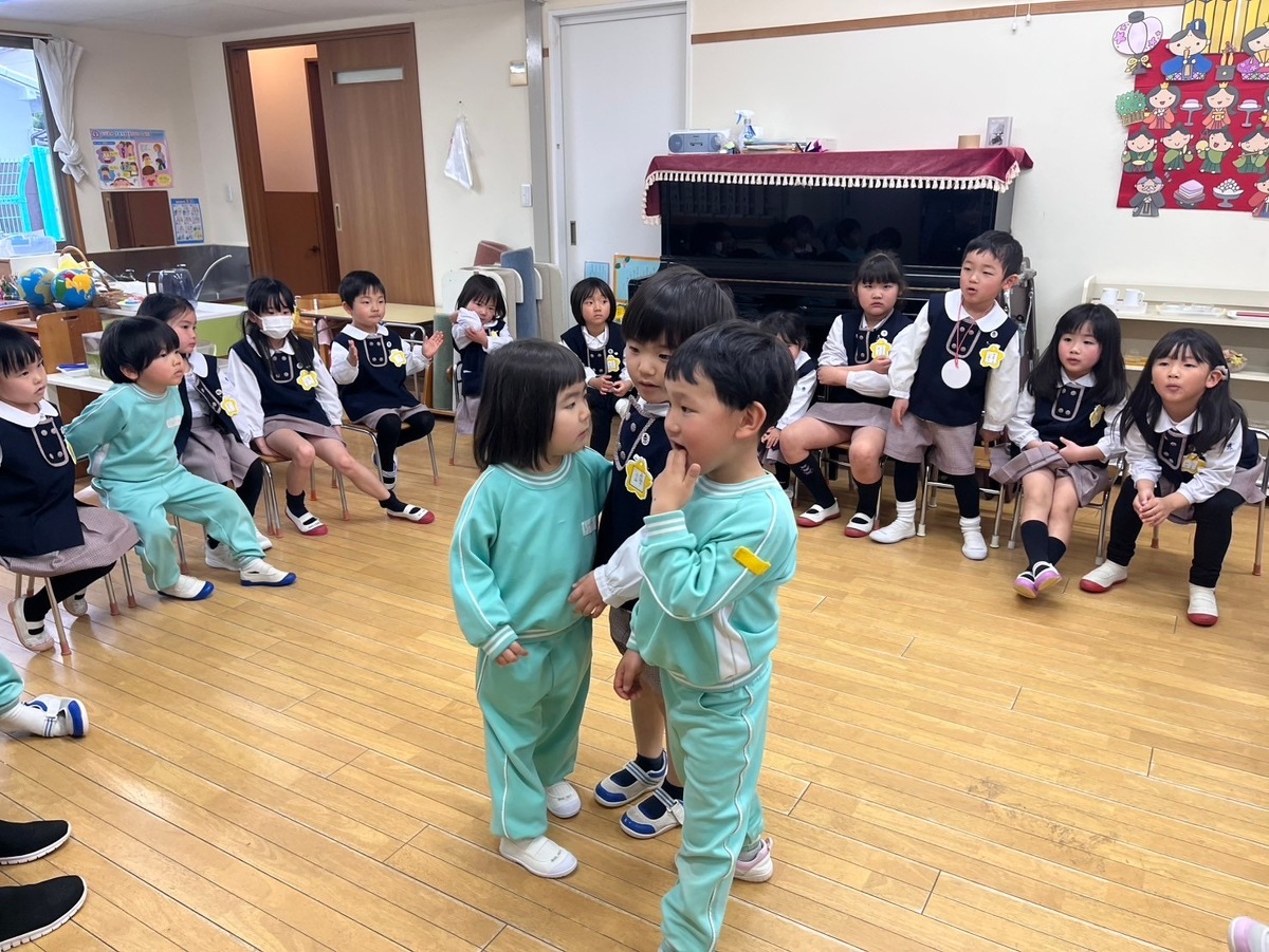 お楽しみ会を行いました。 2025年03月06日(木) 3月3日、ひな祭りの日にお楽しみ会を行いました。初めに、お遊戯室でみんなで一緒に「うれしいひなまつり」を歌いました♪ 各クラスに分かれて、ゲームや製作、しゃぼん玉などを行いました!もうすぐクラス替え・・・クラスのみんなとの素敵な思い出ができました!!