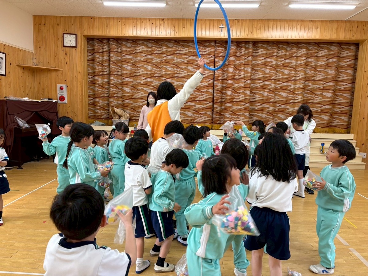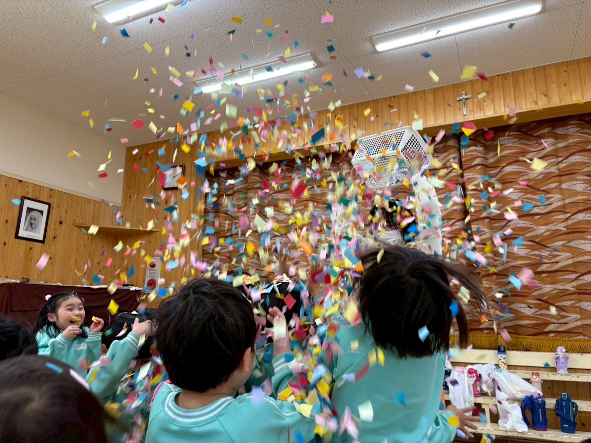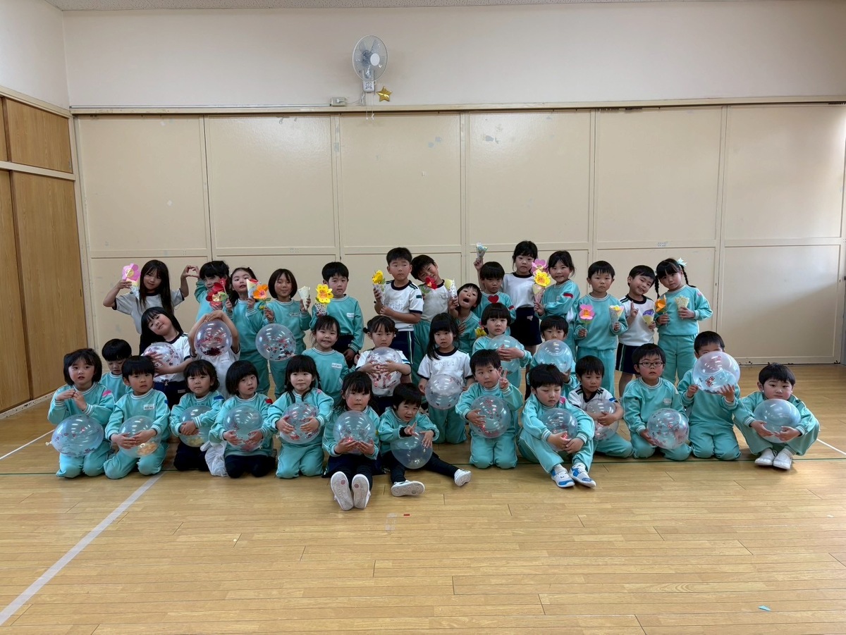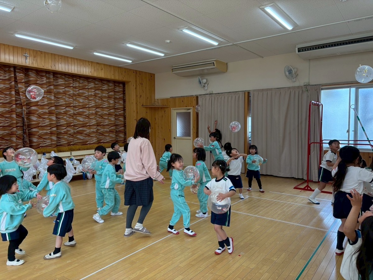 Aグループさんの卒園を紙吹雪でお祝いし、最後は、みんなで風船を使って遊びました!高く投げたり、風船でドッジボールや、バレーをしたりして、楽しい時間になりました⭐︎