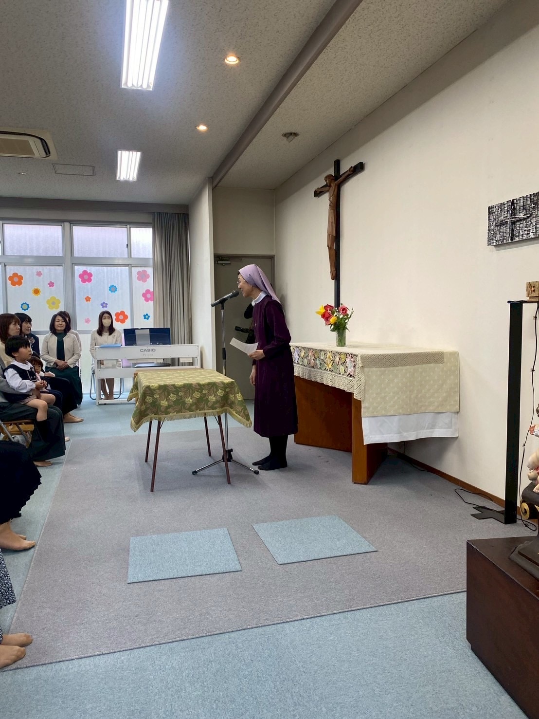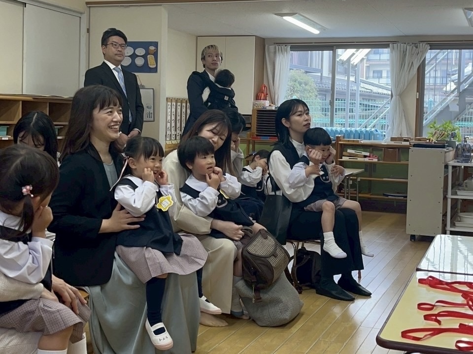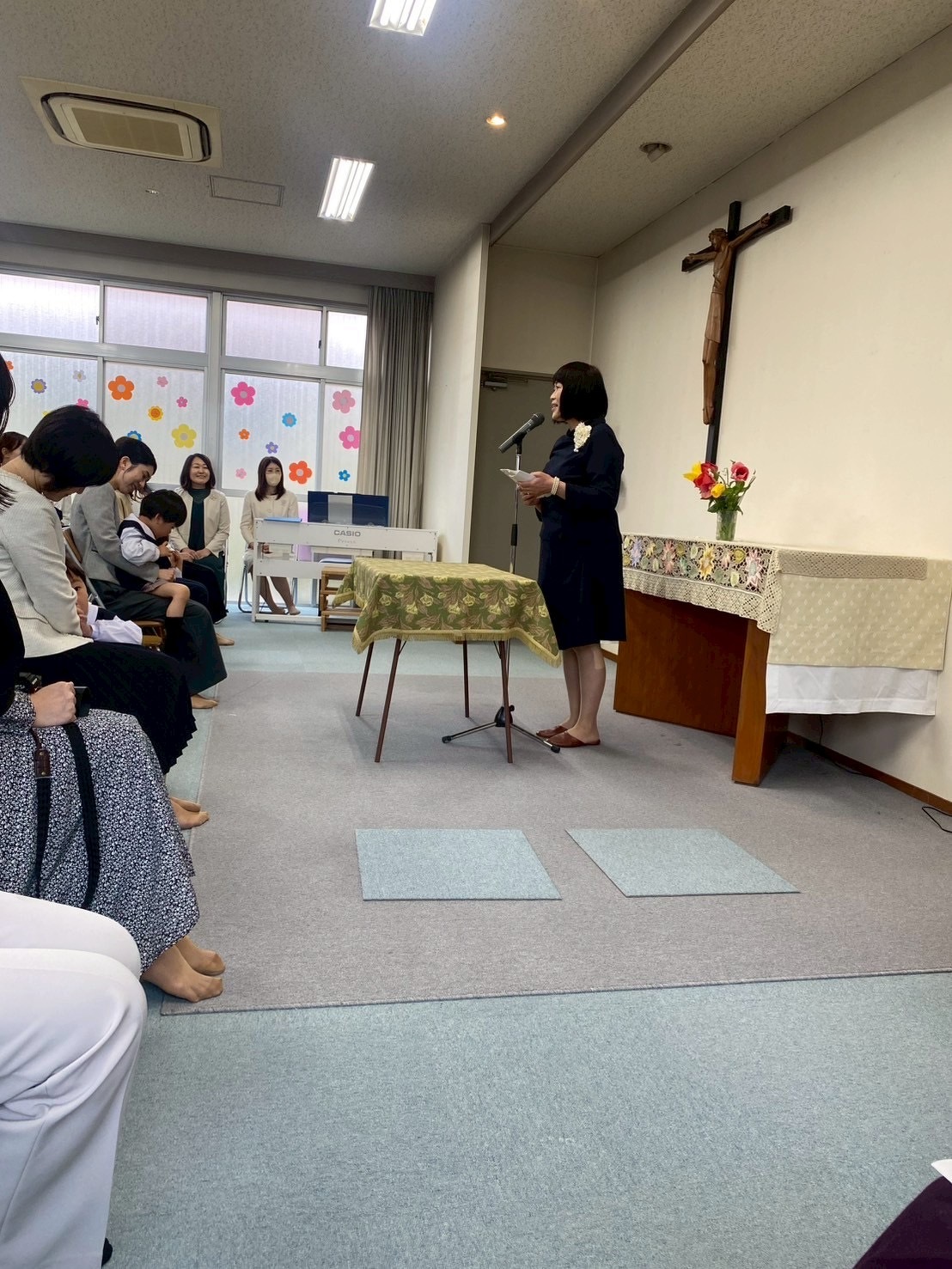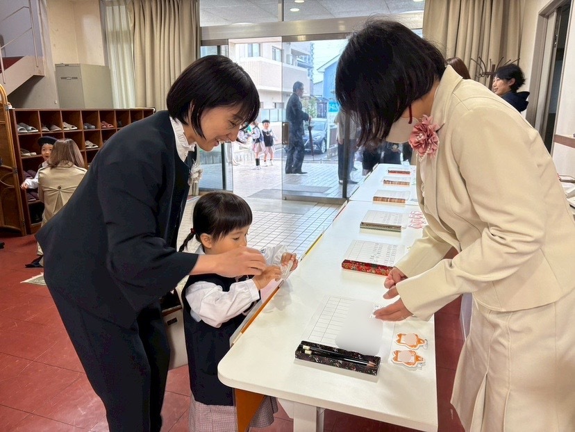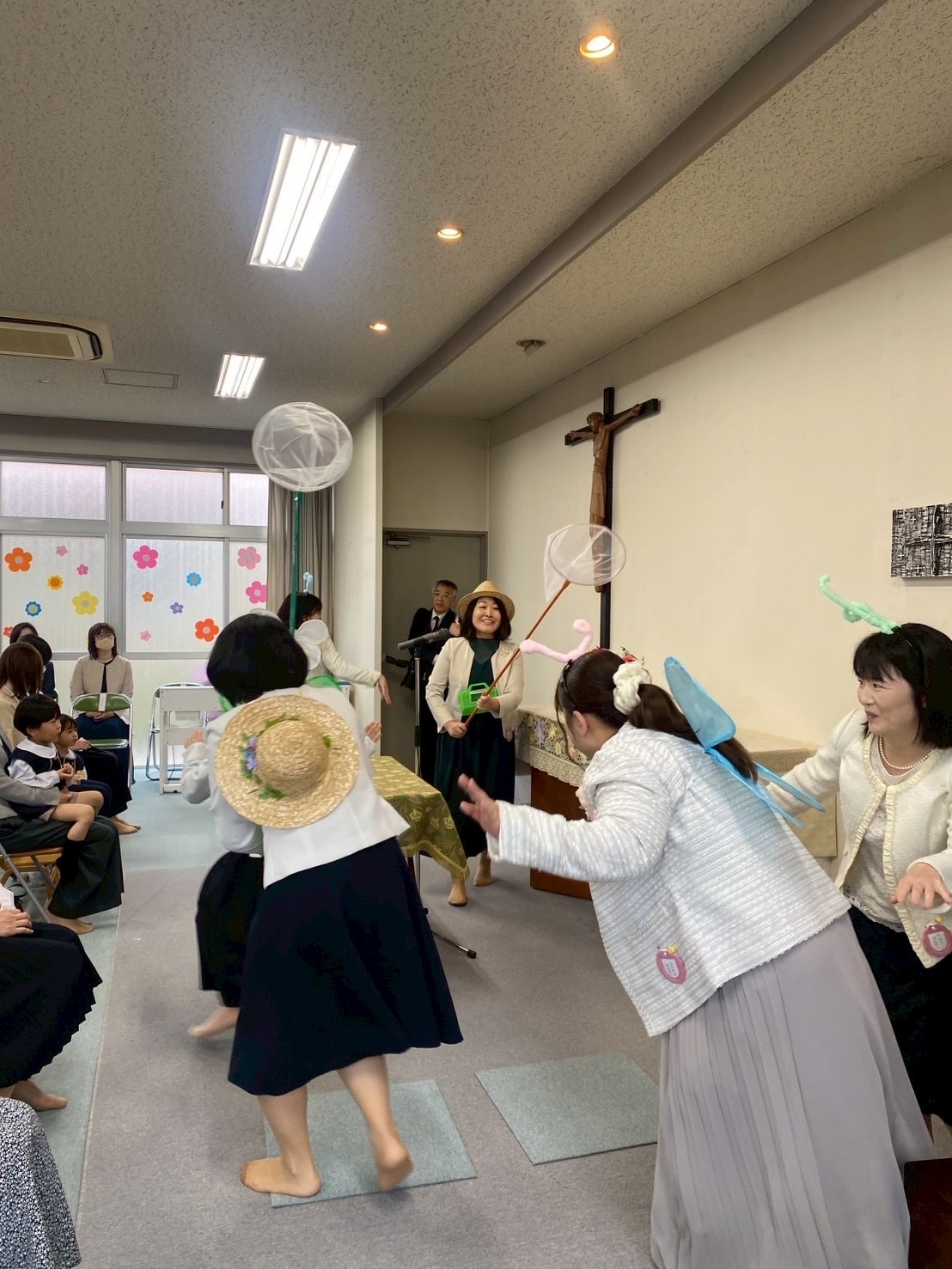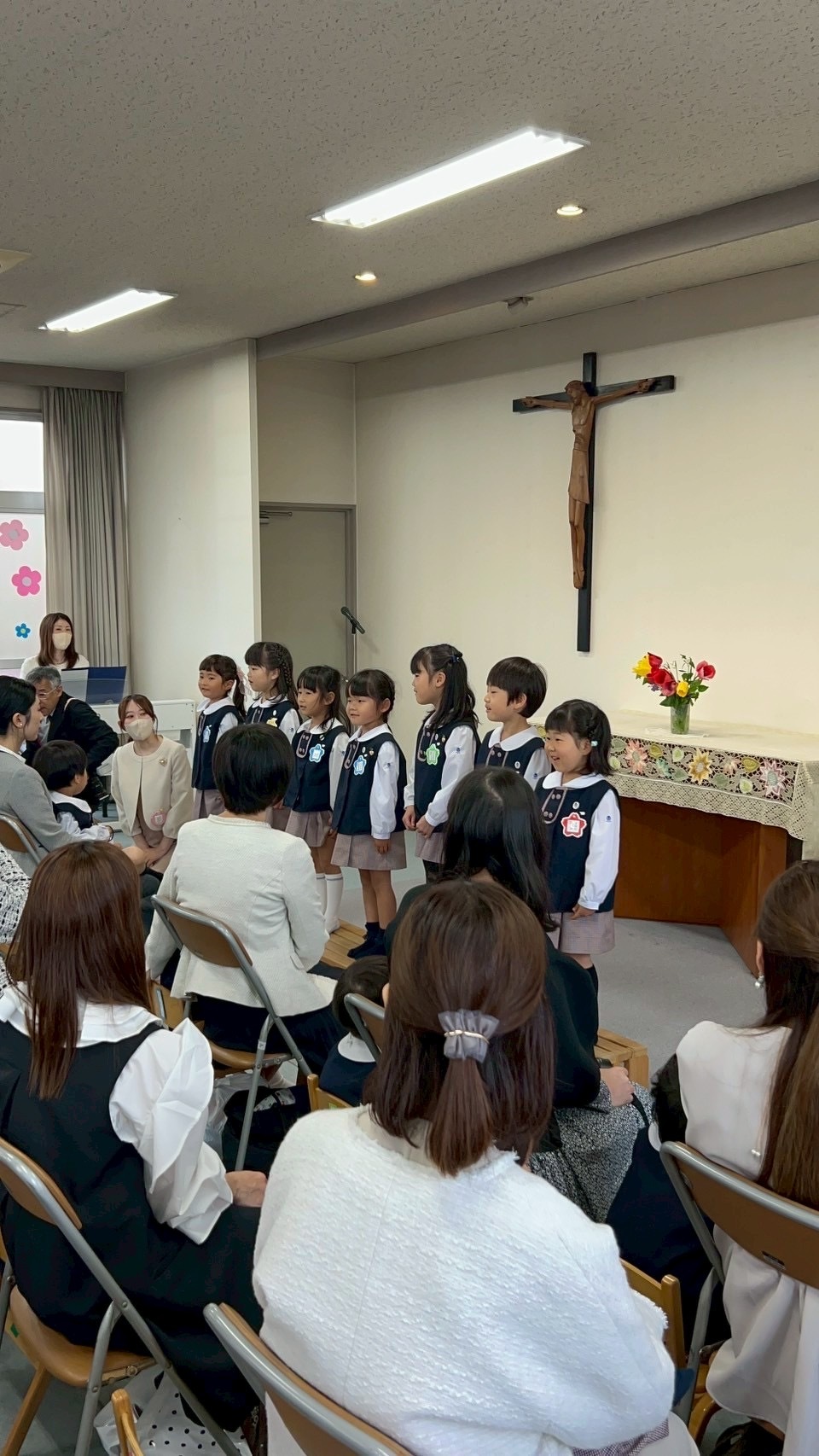 聖堂で、先生たちのお歌や劇、お話を聞いた後、それぞれのクラスに分かれて手遊びをしました!最後は、先生からお祝いのメダルを貰いましたね⭐︎これから、お友達や、お兄さんお姉さん、先生と楽しい園生活を送りましょうね‼︎