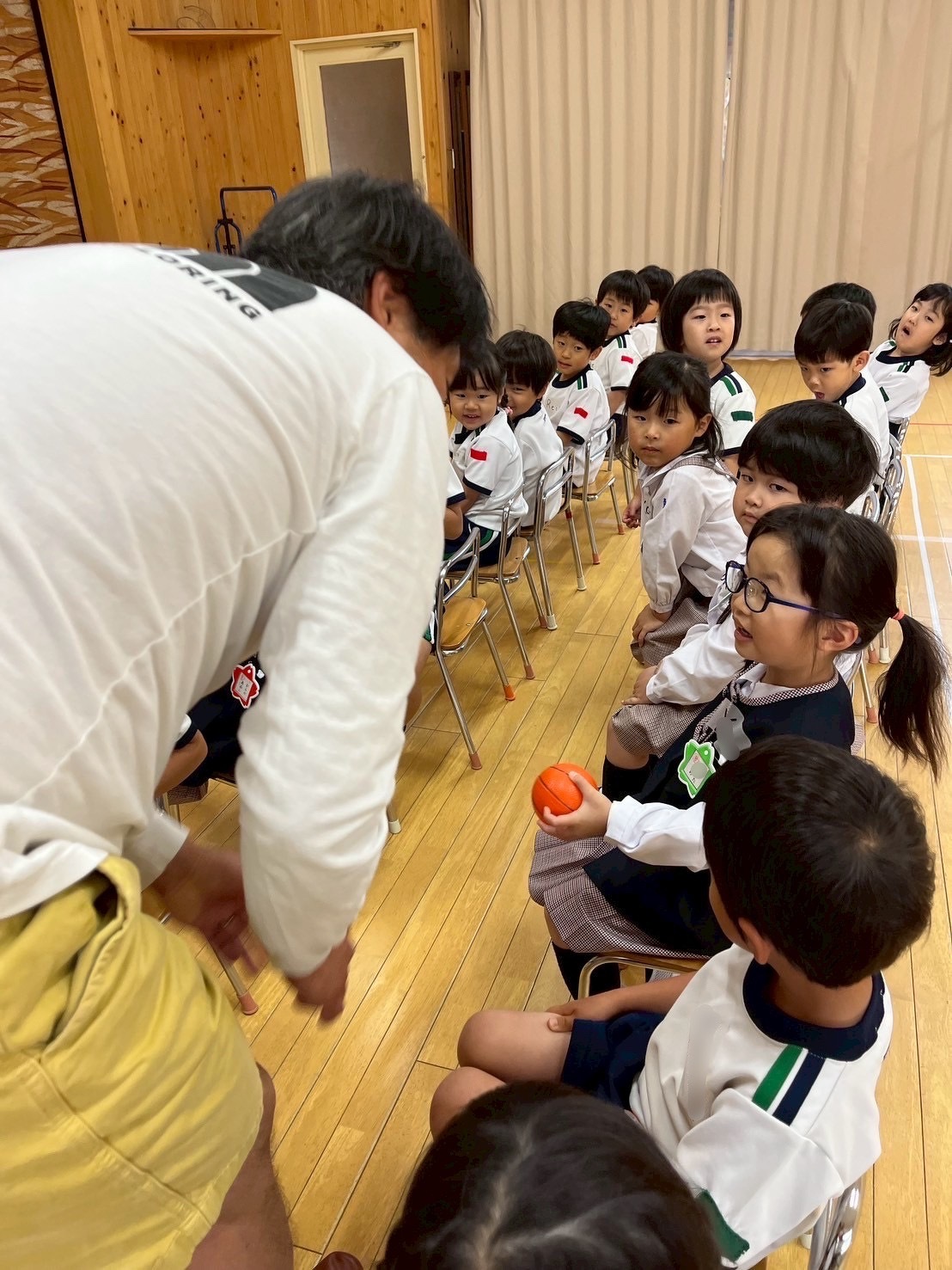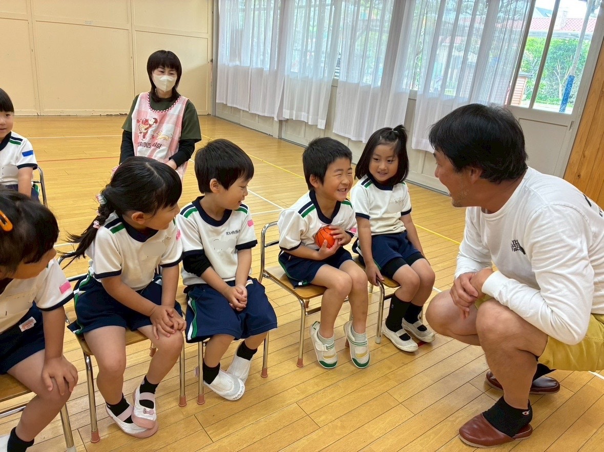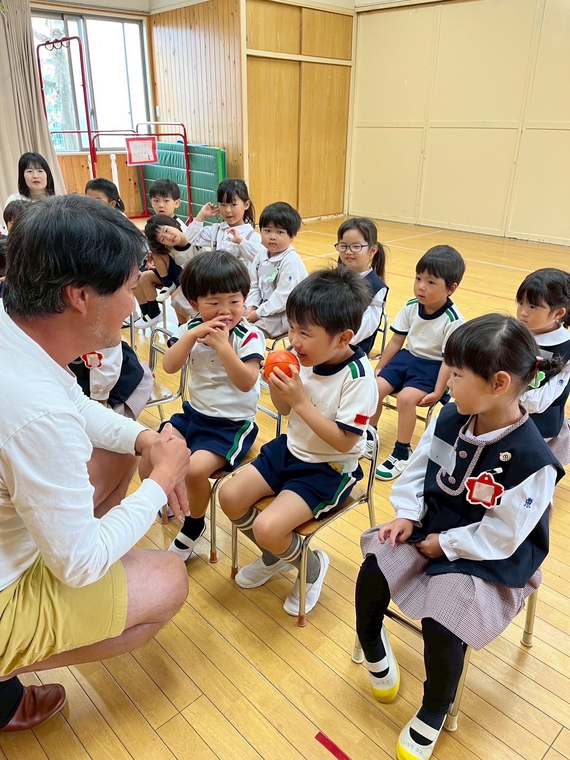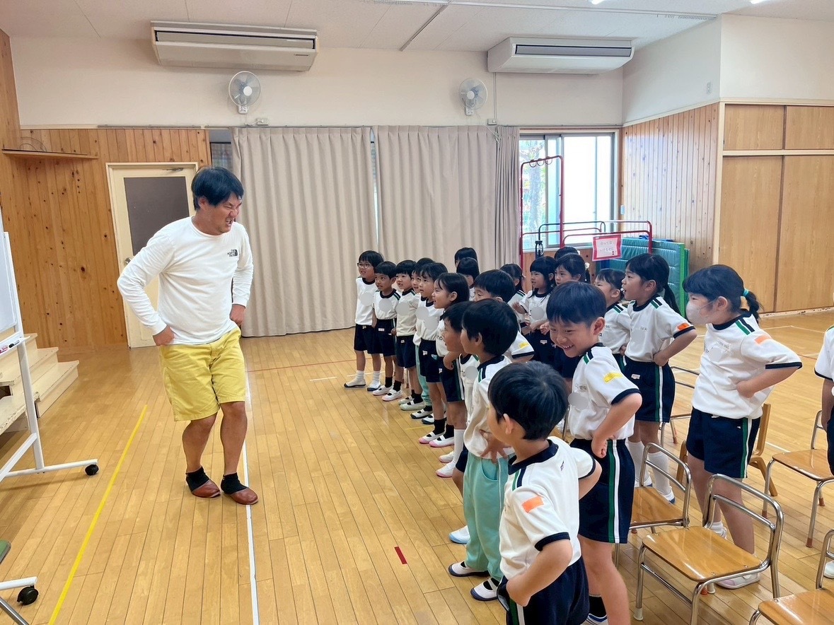 Aグループ(5歳児)・Bグループ(4歳児)の英語教室が始まりました! 2025年05月23日(金) Aグループ(5歳児)・Bグループ(4歳児)の英語教室がありました♪ 「RINGO」の歌をみんなで歌ったり、英語で名前を言ったり、英語でじゃんけんをしたり! 踊ったり、跳んだり、身体全体を使って英語を楽しむことができました✴︎ ジャック先生、1年間よろしくお願い致します!