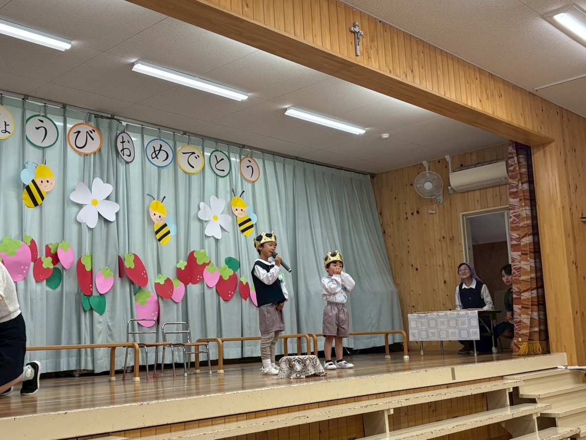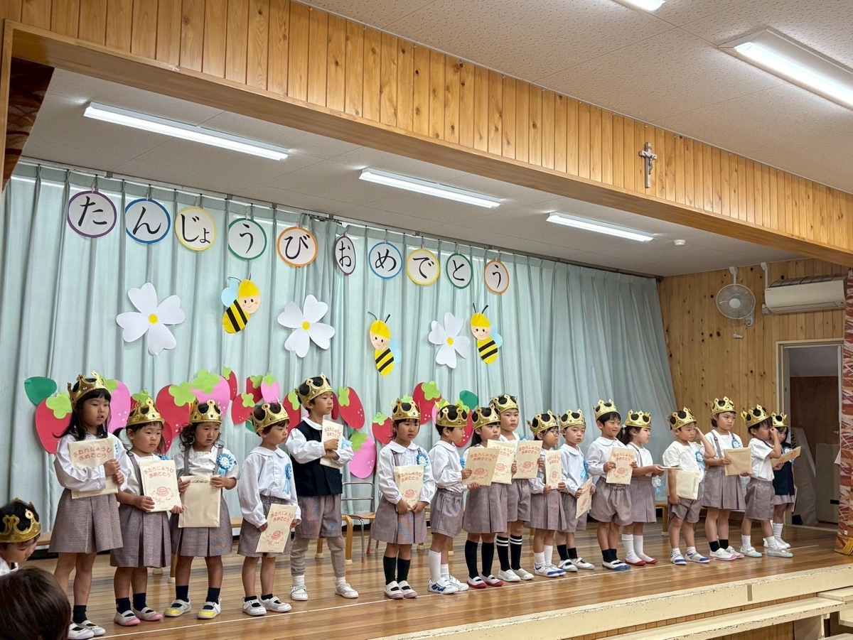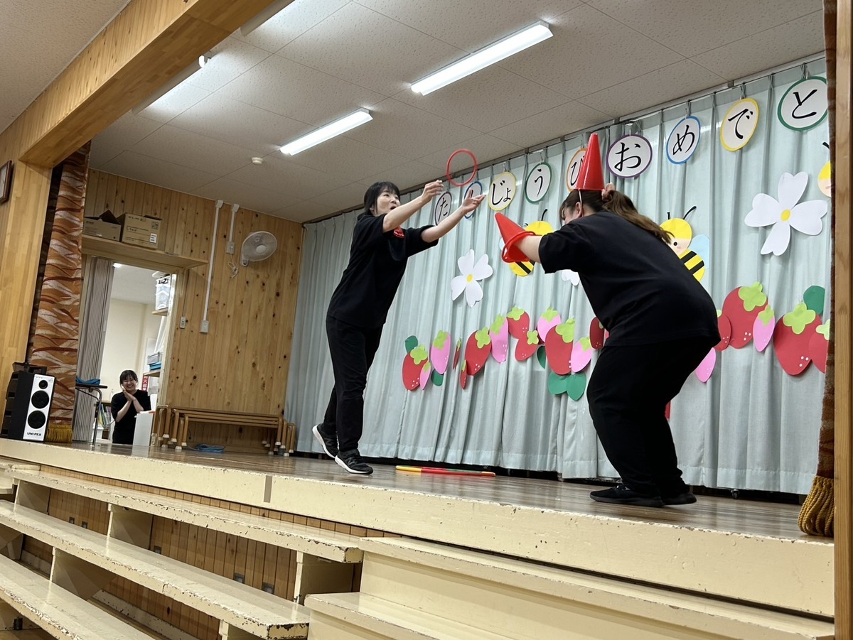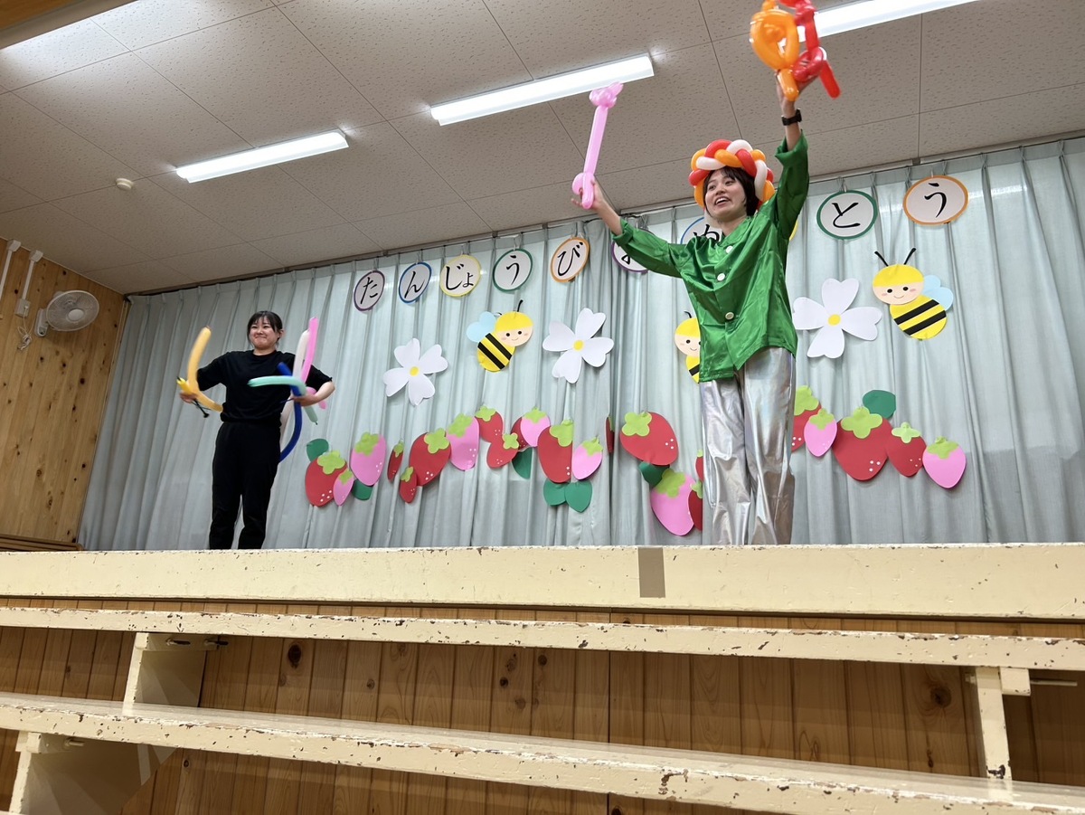 5月生まれの誕生日会がありました⭐︎ 2025年06月19日(木) 5月生まれの誕生日会がありました! みんなの前で、ドキドキしながらも、頑張って発表することができました‼︎ 今月のお楽しみは、色々な国からたくさんのお楽しみを披露しに(先生たち)来てくれましたよ✴︎ 側転やバルーンアート、ジェスチャーゲームや、輪投げ名人、博士や、モノマネ名人、手品名人‼︎色々なお楽しみを、みんなで一緒に楽しむことができました♪