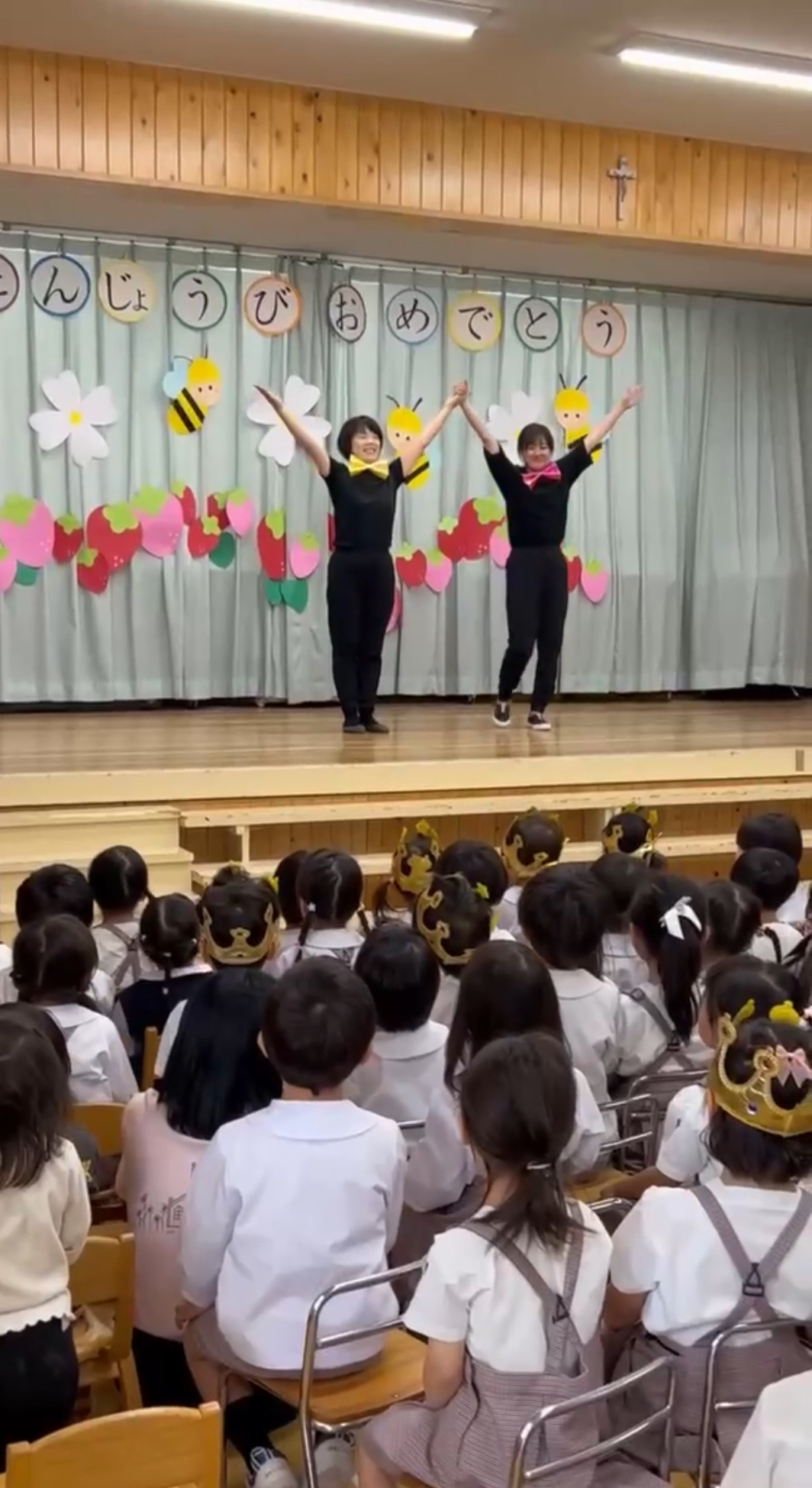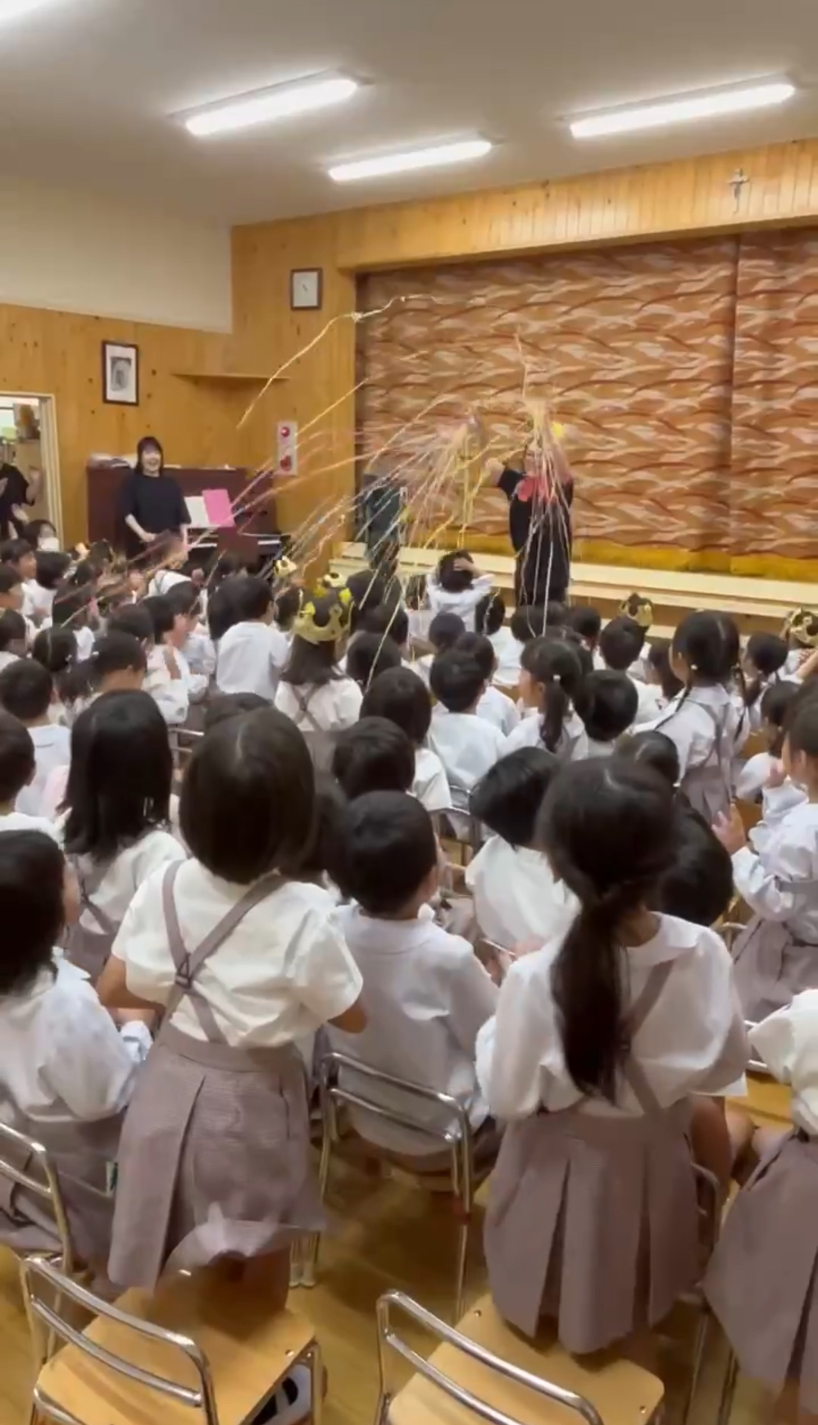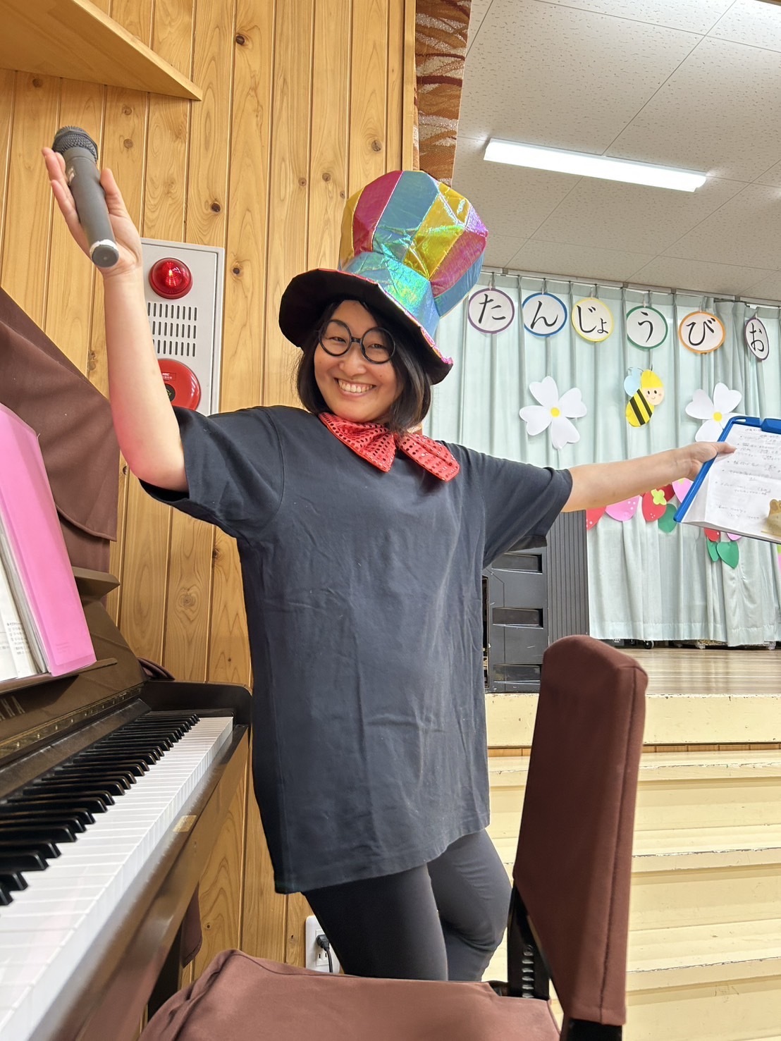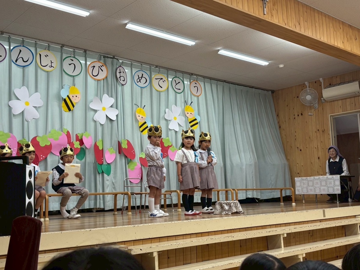 5月生まれの誕生日会がありました⭐︎ 2025年06月19日(木) 5月生まれの誕生日会がありました! みんなの前で、ドキドキしながらも、頑張って発表することができました‼︎ 今月のお楽しみは、色々な国からたくさんのお楽しみを披露しに(先生たち)来てくれましたよ✴︎ 側転やバルーンアート、ジェスチャーゲームや、輪投げ名人、博士や、モノマネ名人、手品名人‼︎色々なお楽しみを、みんなで一緒に楽しむことができました♪