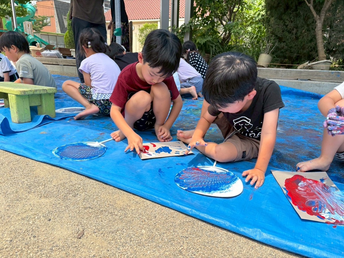 色々な色を混ぜながら、世界に一つだけのうちわを作りました☆彡