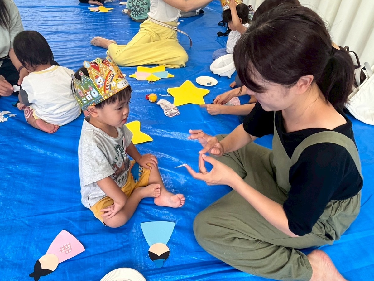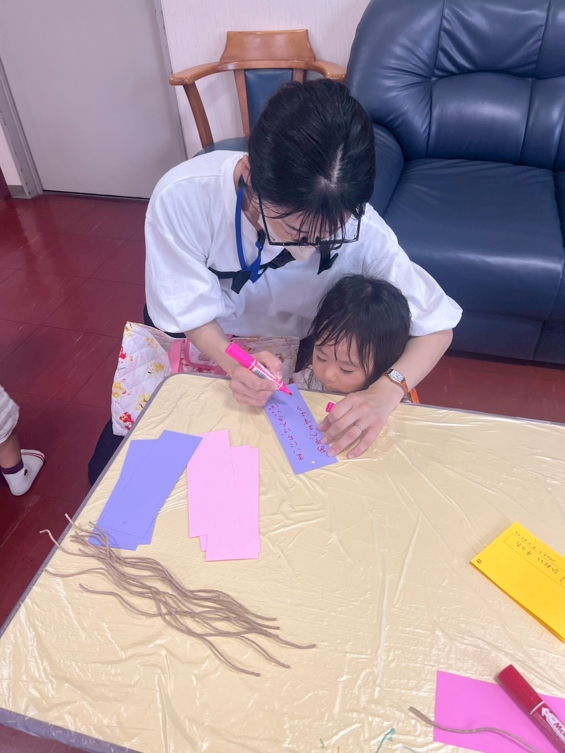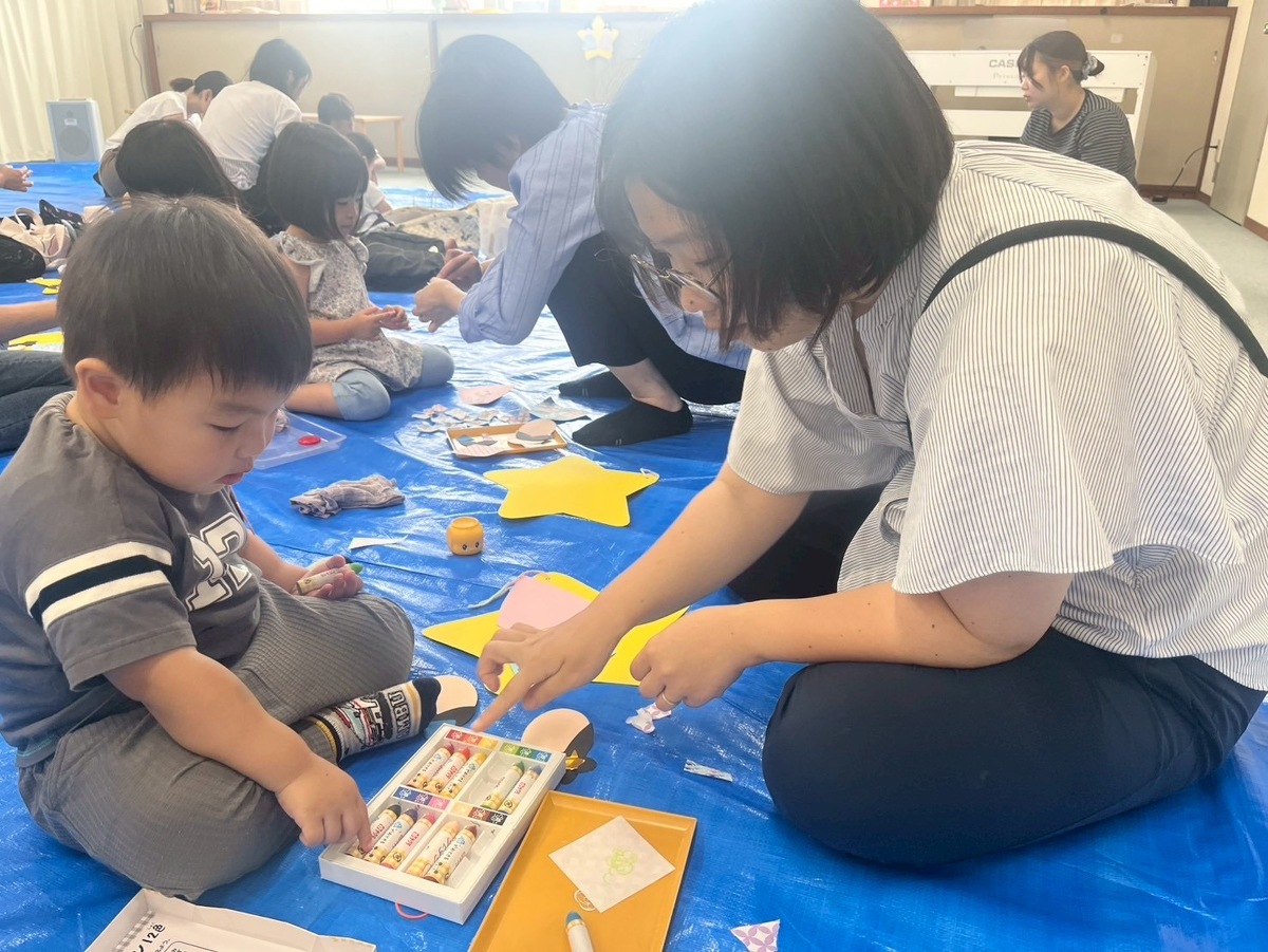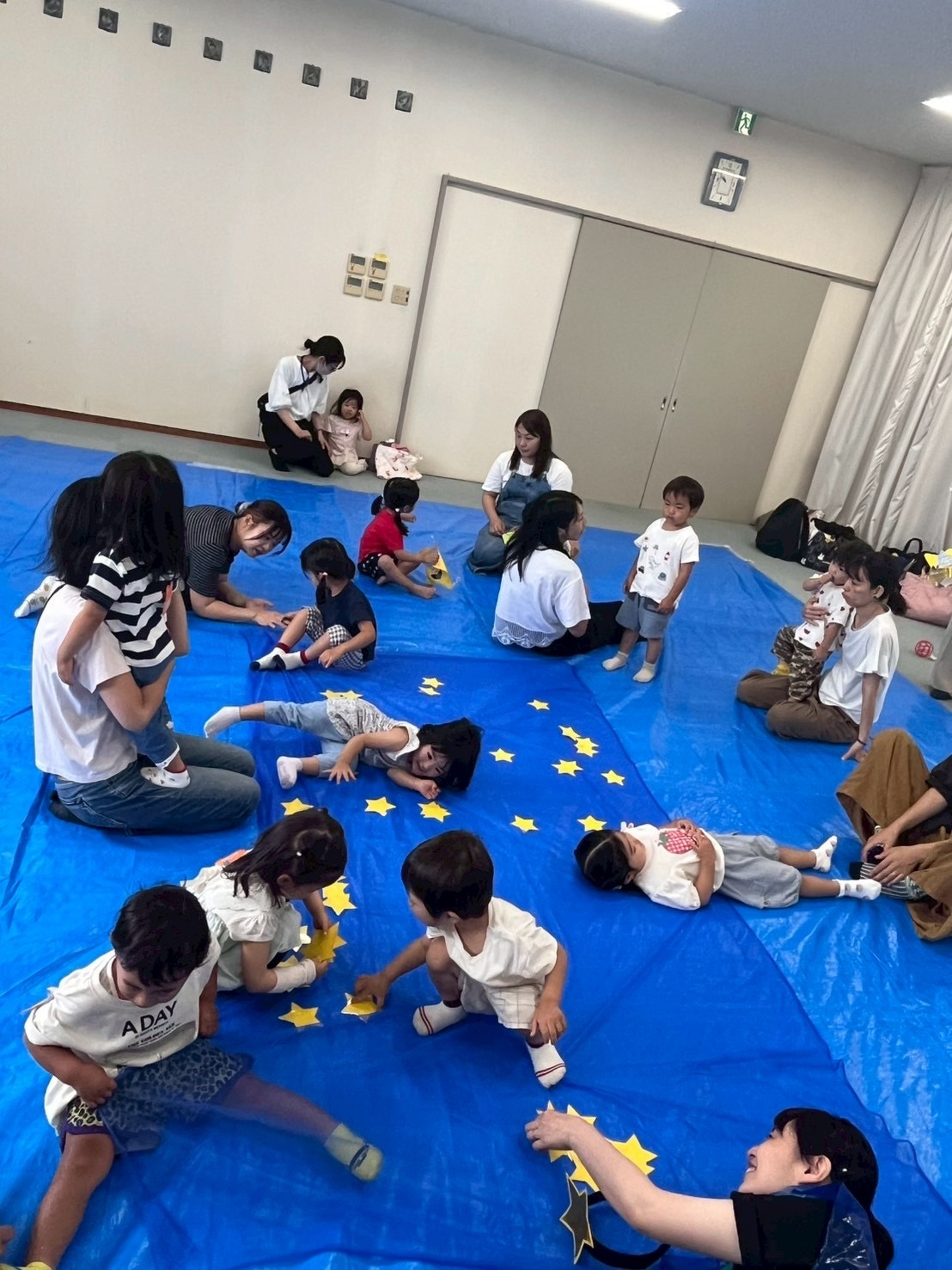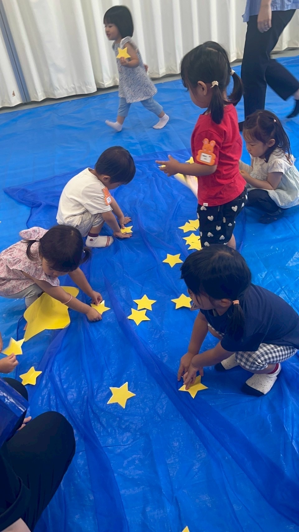 つぼみ・プチつぼみクラスで七夕製作を行いました‼︎ 2025年07月17日(木) 親子で七夕製作を行いました。 のりを貼ったり、目や口を描いたり、世界にひとつだけの素敵な織姫と彦星ができあがりました♪ おうちの方にも子どもたちにも笑顔がたくさん見られました☺︎ 製作のあとは、みんなで「たなばたさま」を歌ったり、大きな天の川をつくったりして楽しみました。 保護者の皆様、1学期ありがとうございました。子どもたちの成長を感じながら、心温まるひとときとなりました。 2学期もどうぞよろしくお願いいたします。