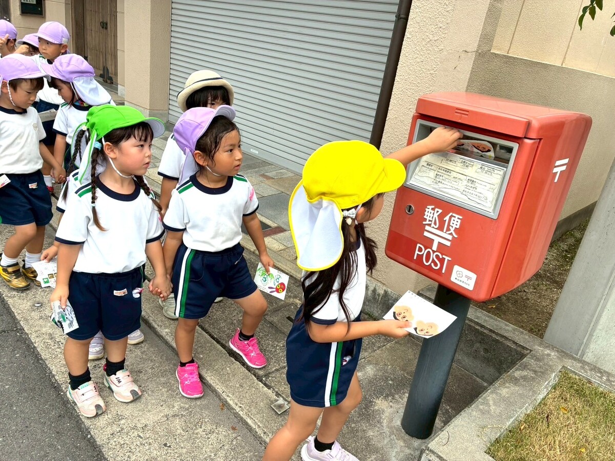 敬老の日のハガキを投函しました。 2025年09月22日(月) 敬老の日に向けて、みんなで葉書を投函しました。 おじいちゃん、おばあちゃんのことを思いながら、一生懸命に絵を描いた子どもたち。 『だいすき』の気持ちが、遠くにいるおじいちゃん、おばあちゃんにも届きますように。