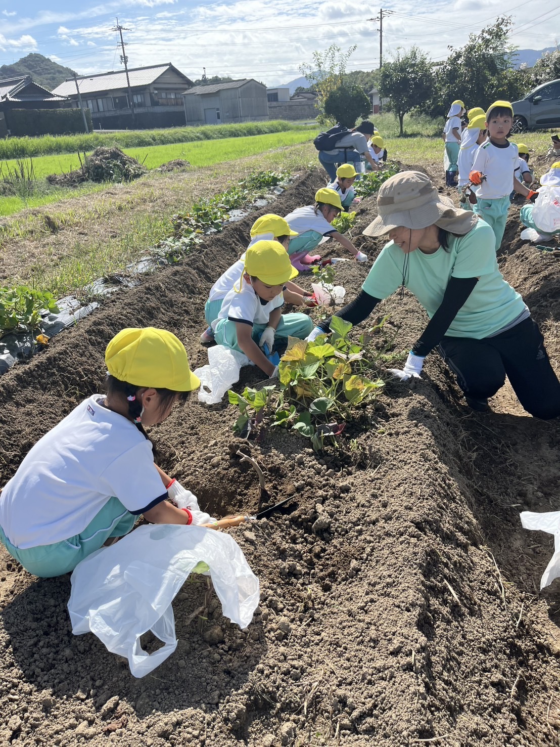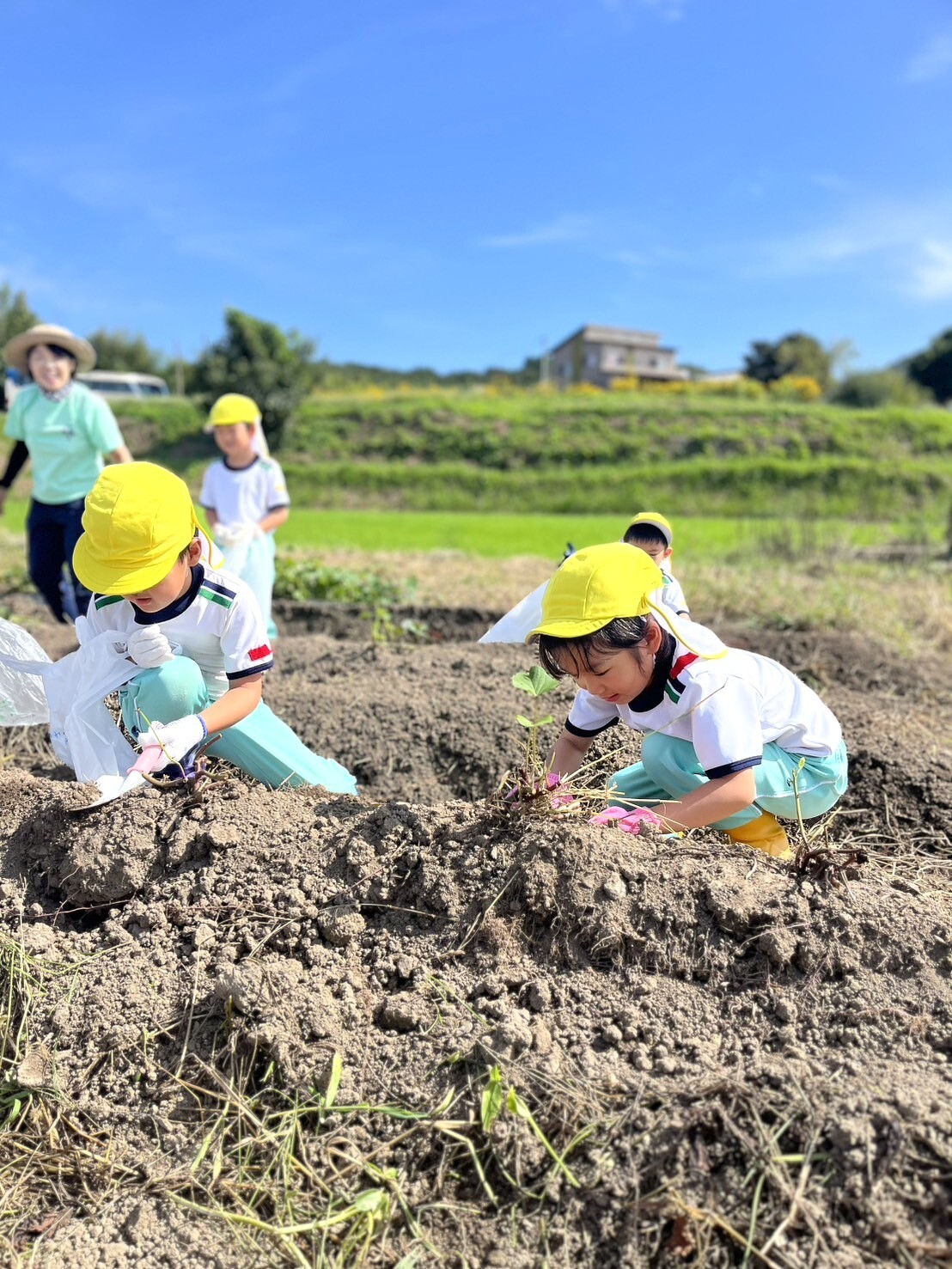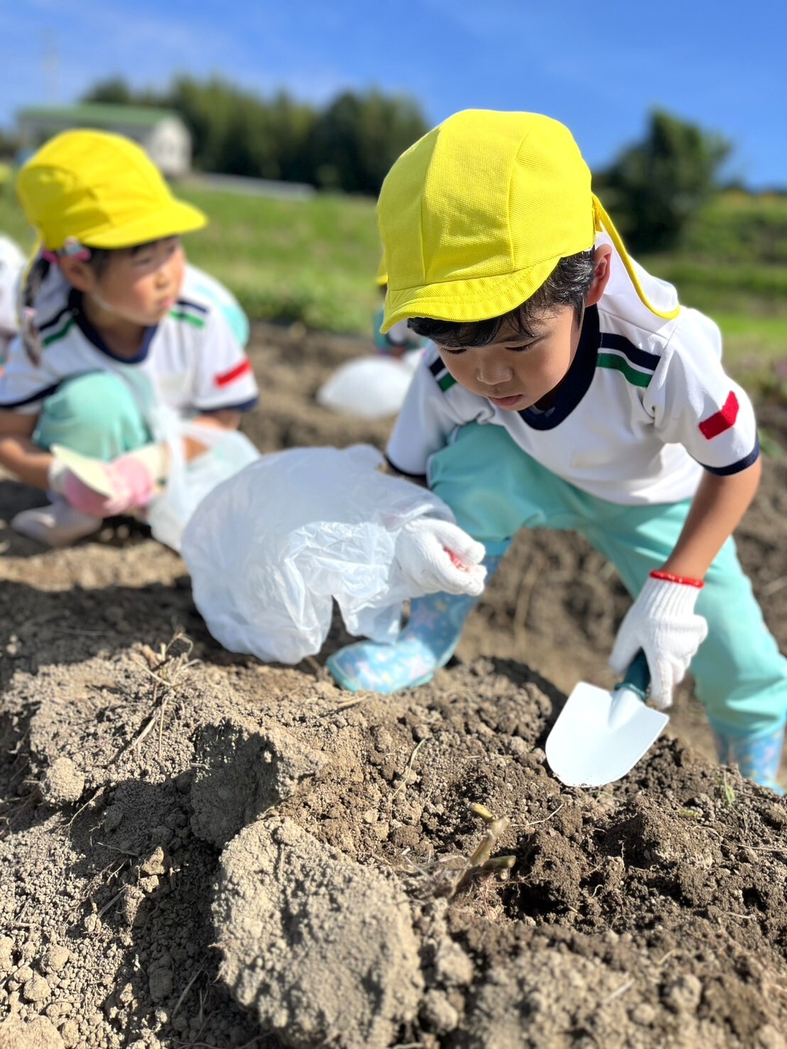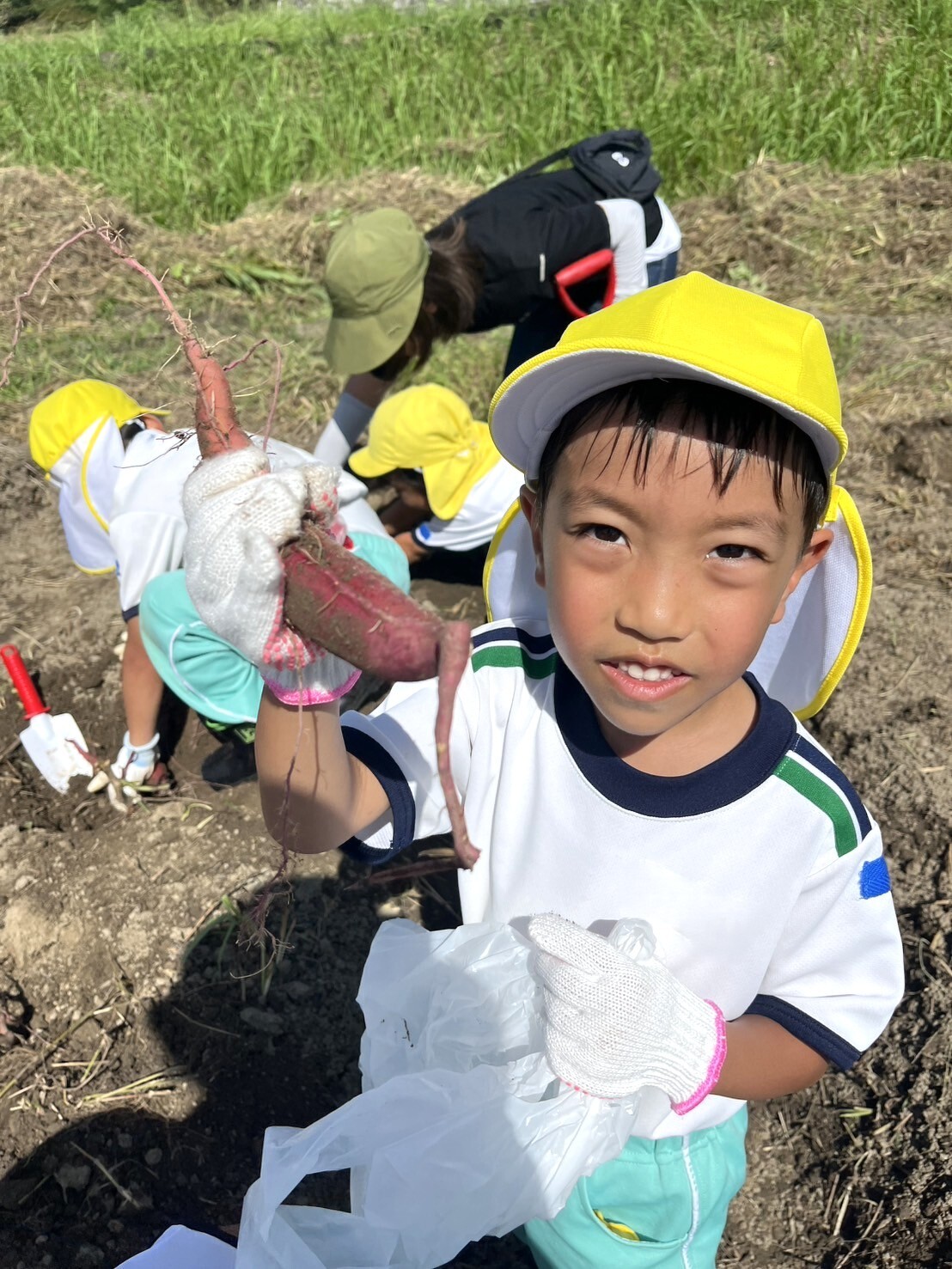 <Aグループ>がお芋ほりに行きました! 2025年09月26日(金) 土の中から顔を出したお芋に大喜び! 自然にふれた子どもたち表情は、今までに見たことがないくらい 輝いていました✨ 秋の恵みに感謝、畑の先生に感謝!! 子どもたちがのびのびと、ありのままの姿で成長していく姿がここにあります。 土のぬくもりと秋の実にふれながら、子どもたちは大きな学びをいただきました。 畑の先生ありがとうございました。