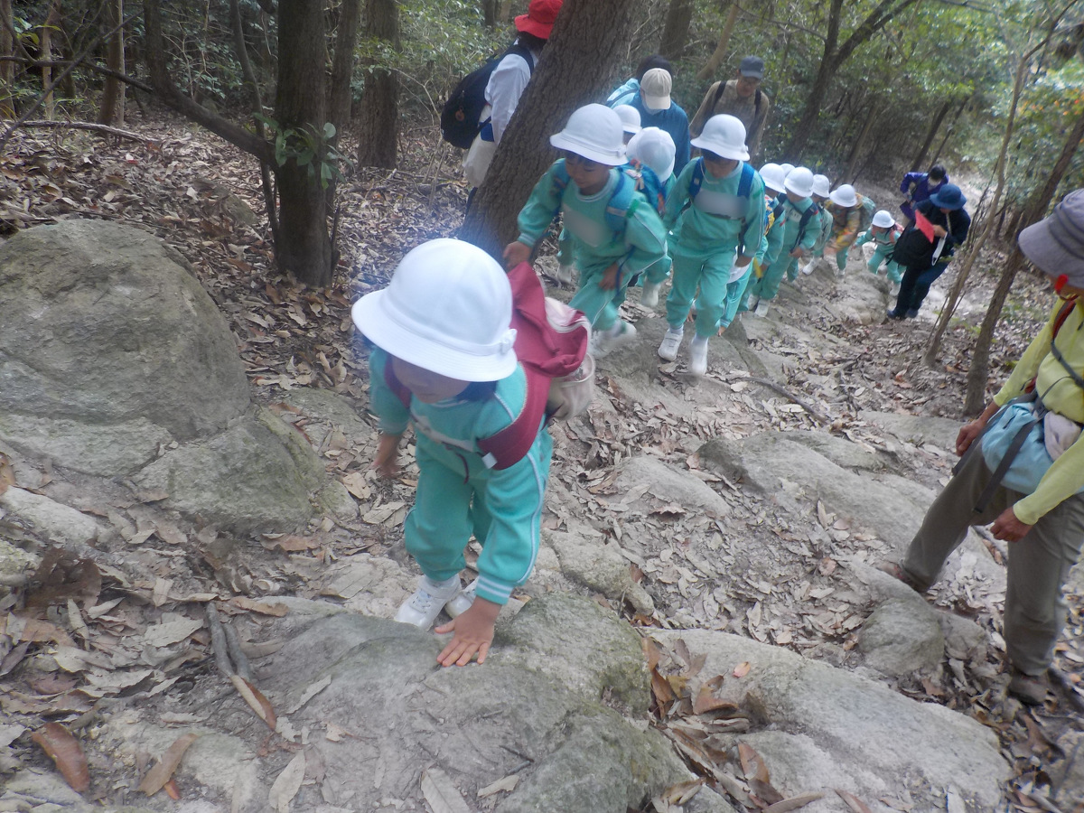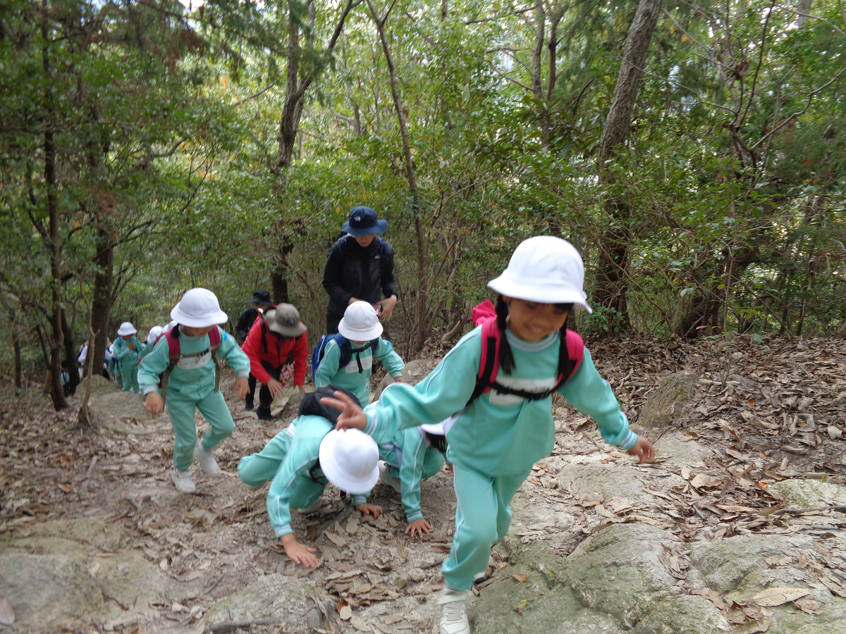 5歳児(Aグループ)が日山登山をしました。 2022年10月27日(木) 5歳児(Aグループ)が日山登山をしました。お友だち同士で励まし合いながら、みんなで最後まで登りきることができ、達成感や充実感に満ち溢れた子どもたちの姿が見られました。