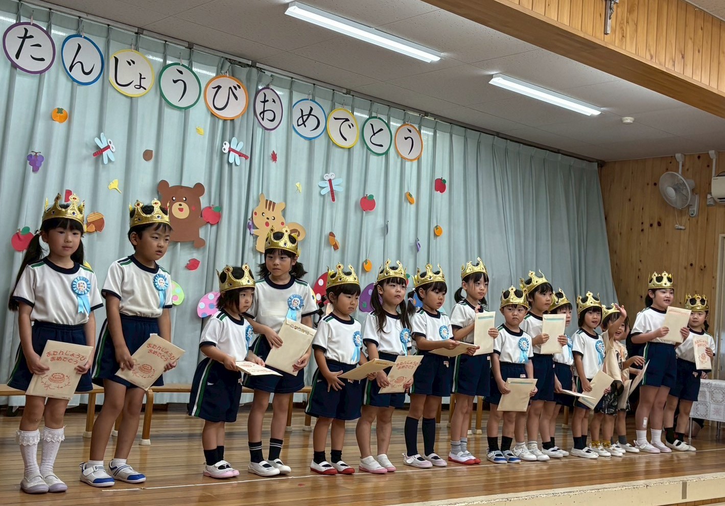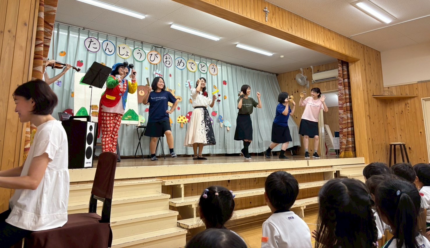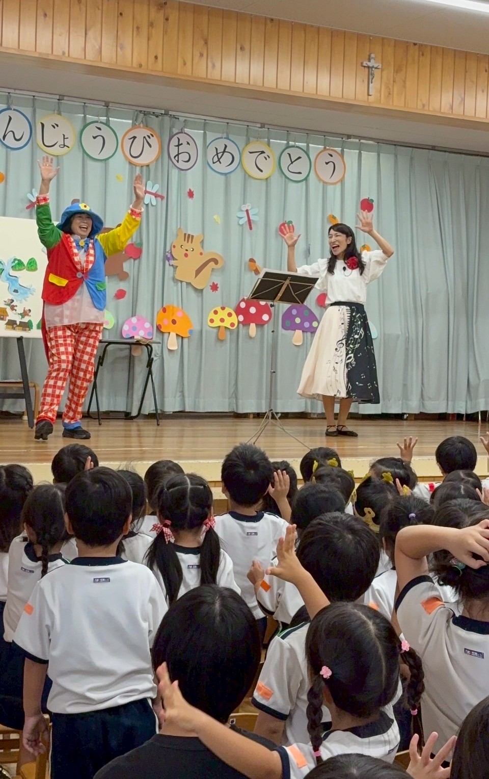 9月生まれのお誕生会をしました 2025年10月21日(火) 子どもたちは自分の名前を元気に発表し、みんなで成長を喜び合いました。 みゅーじっくすぺーす・コモドさんをお迎えし、歌やバイオリンの演奏、ゆりお姉さんや先生と一緒に踊るひととき☆ 歌のひろみお姉さんの歌声が響くと、子どもたちの心が一気に明るくなり、会場が一つに✨ 笑顔と音楽に包まれた時間となりました。 みゅーじっくすぺーす・コモドさん、素敵な音楽を届けてくださった皆様に心から感謝いたします。 これからも子どもたちに、たくさんの歌声と音楽を届けてくださいね。
