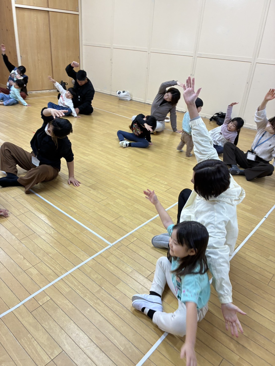おうちの方と一緒に、心と体をほぐすストレッチからスタートしました。