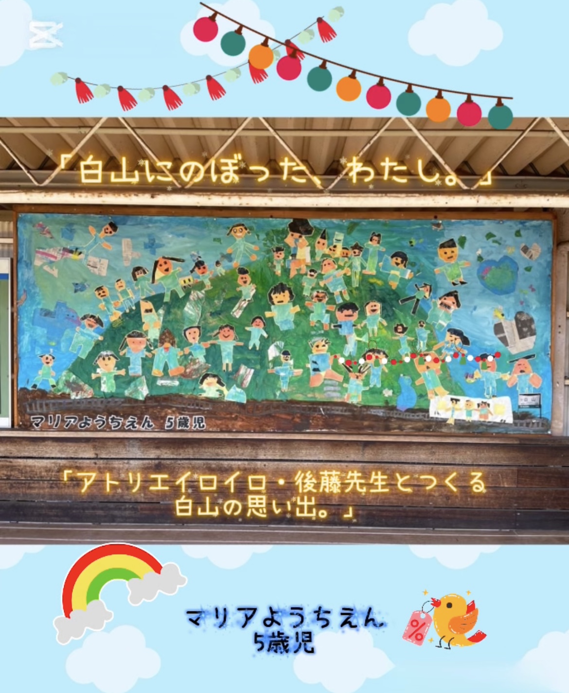 琴電太田駅に5歳児の作品が掲示されています。 2025年12月26日(金) 5歳児がアトリエイロイロの後藤先生と一緒に、アートの時間に 『秋の白山登山』をテーマにした作品づくりを行いました。 白山で感じた風、景色、「がんばった自分」の気持ちを思い出しながら、 顔の色も、表情も、山もすべて自分で考えて表現しました✨ つくった「わたし」は山の上や電車の中など、それぞれが「ここが好き」と 選んだ場所へ。 同じ白山でも感じたこと、見えた景色はみんな違う。 これがアートの面白さです! この作品は、琴電太田駅に掲示しています。 子どもたち一人ひとりの冒険を、ぜひご覧ください。