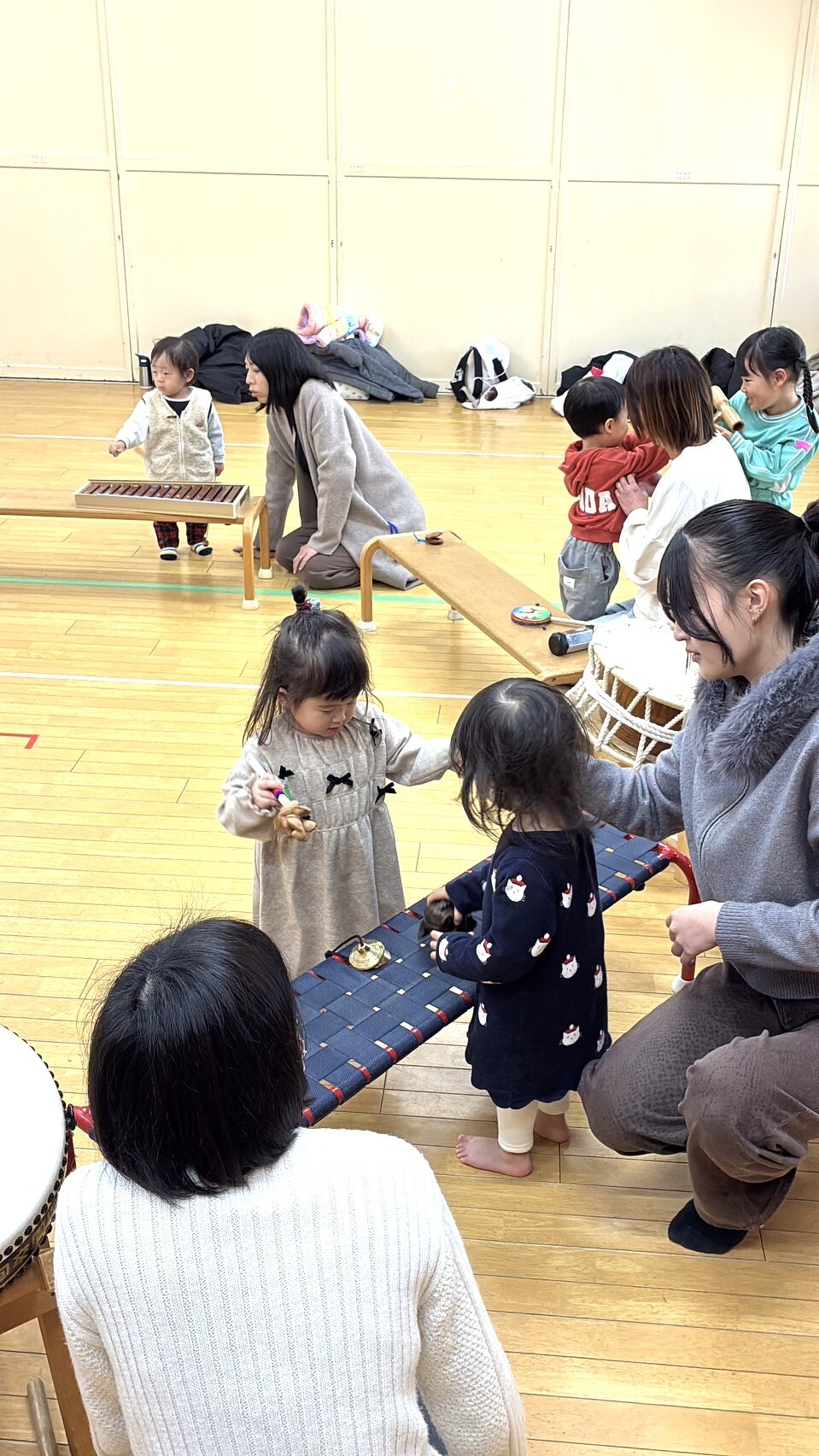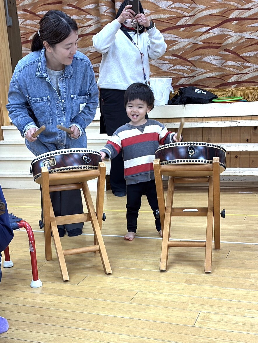 子育て支援『親子でリトミック』 2026年02月06日(金) 1・2歳児のお友だちとお母さんたちが、たくさんの音に出会った一日✨ 平太鼓・大太鼓・締太鼓、木琴やサウンドパイプ カスタネットやタンブリン、そして世界の楽器にも触れました。 「どんな音がするかな?」 小さな手で叩いて、振って、回して... 音が鳴るたびに、子どもたちの目がキラキラ お母さんたちも一緒にワクワク! 最後は、好きな楽器を選んでみんなで音を奏でる楽しい時間に♪ 小さいからこそ感じられる『音の世界』 親子で一緒に楽しめたあたたかなひとときでした。
