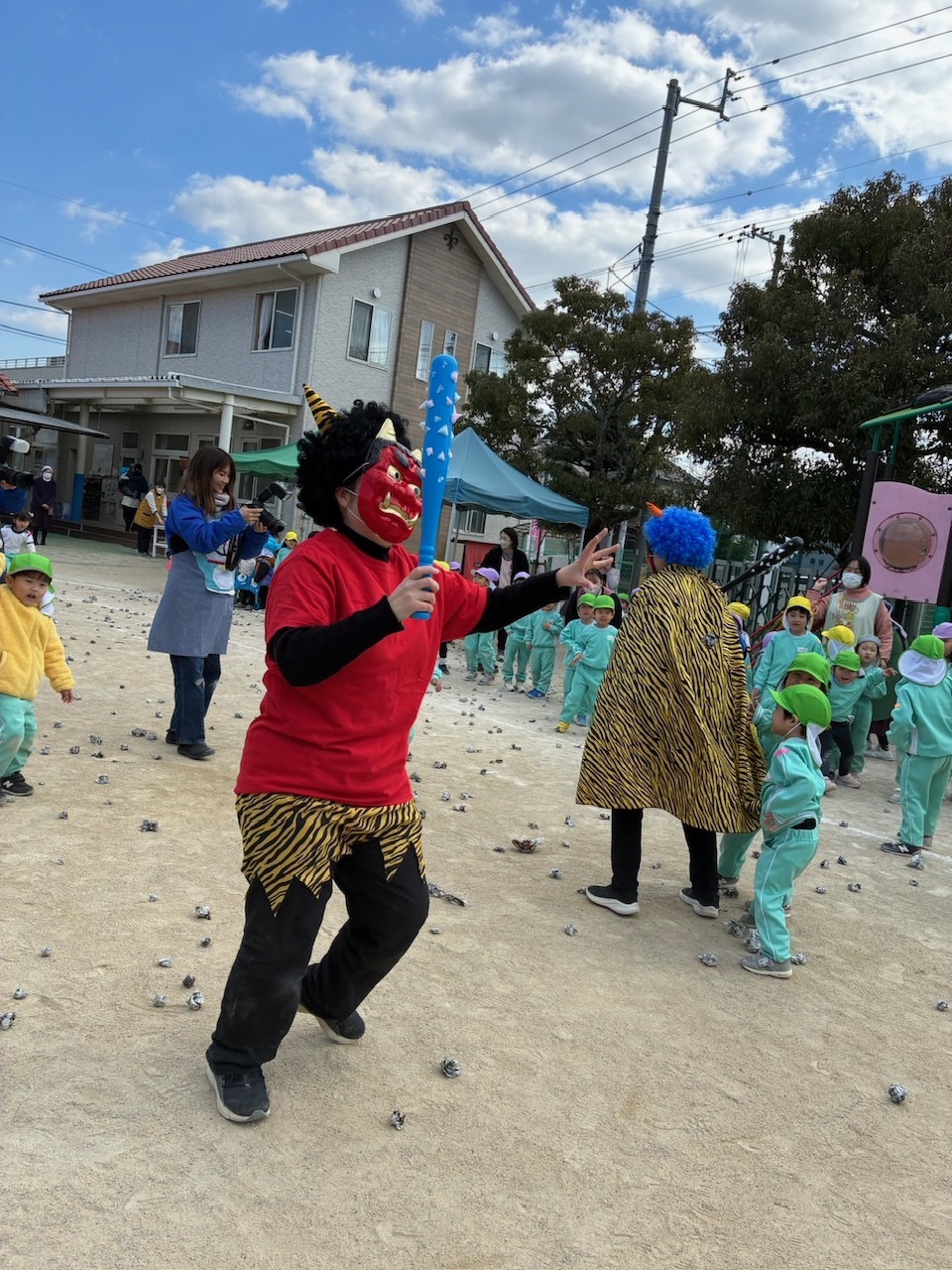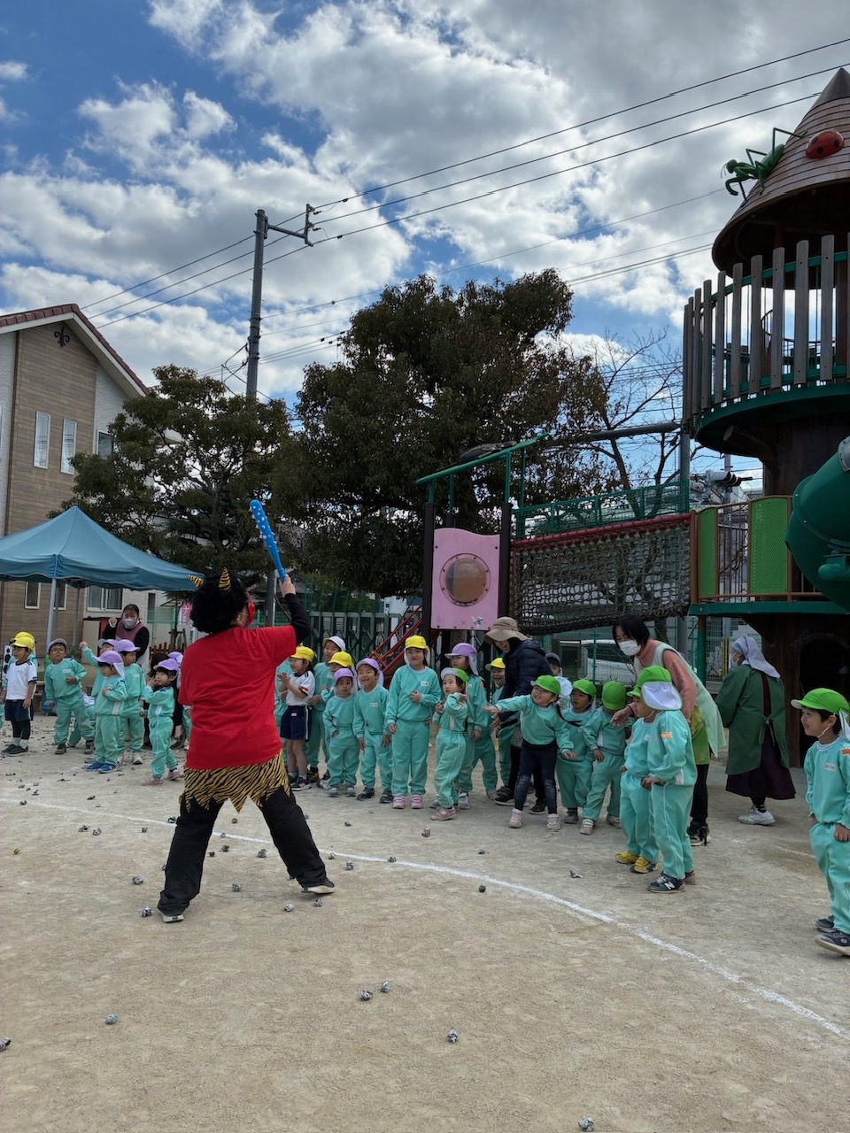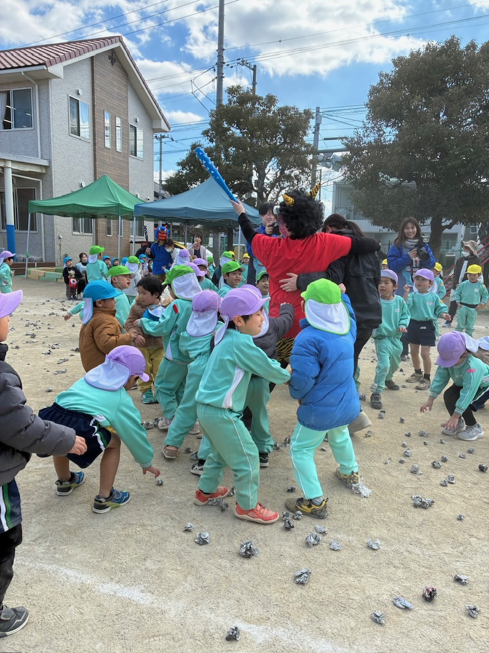 節分の日、園庭で豆まきをしました✨