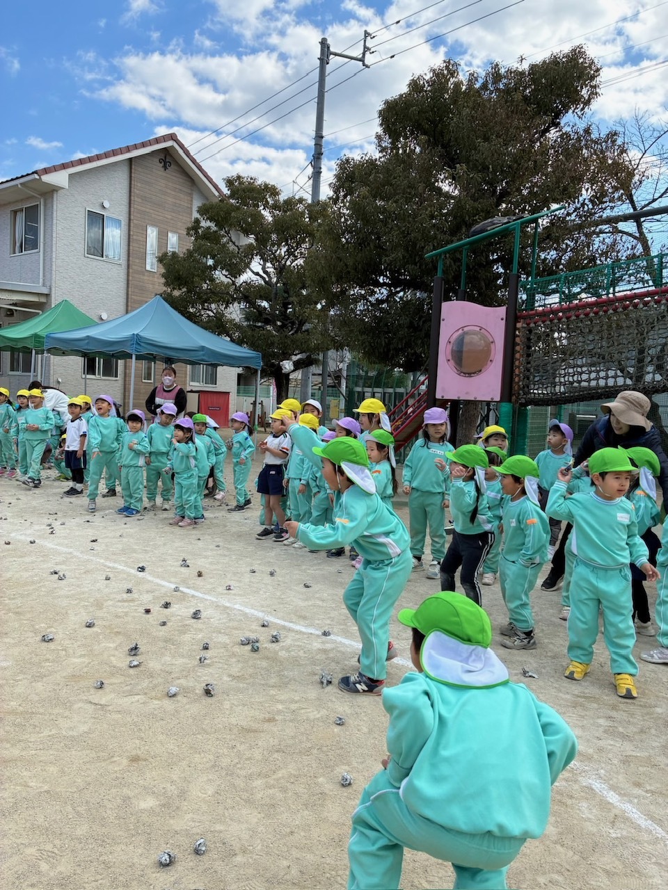 マリア幼稚園の平和は守られ、最後はみんなで歌を歌い、豆のお片付け競争まで✨