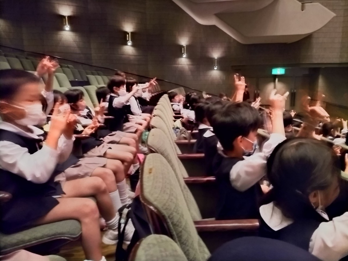 5歳児(Aグループ)が劇団角笛観劇に出掛けました。 2022年11月07日(月) 5歳児(Aグループ)が劇団角笛観劇に出掛けました。角笛シルエット劇場「こぶたのマーチ」とクックちゃんと楽しい童謡をめぐる「つのぶえのうた第57集」の2作品を見ました。知っている歌に合わせて元気に歌ったり、一緒に手遊びをしたりと楽しむ子どもたちの姿が見られました。観劇後は、玉藻公園でみんなでお弁当を食べ、楽しい1日を過ごしました。