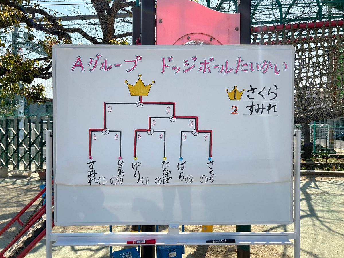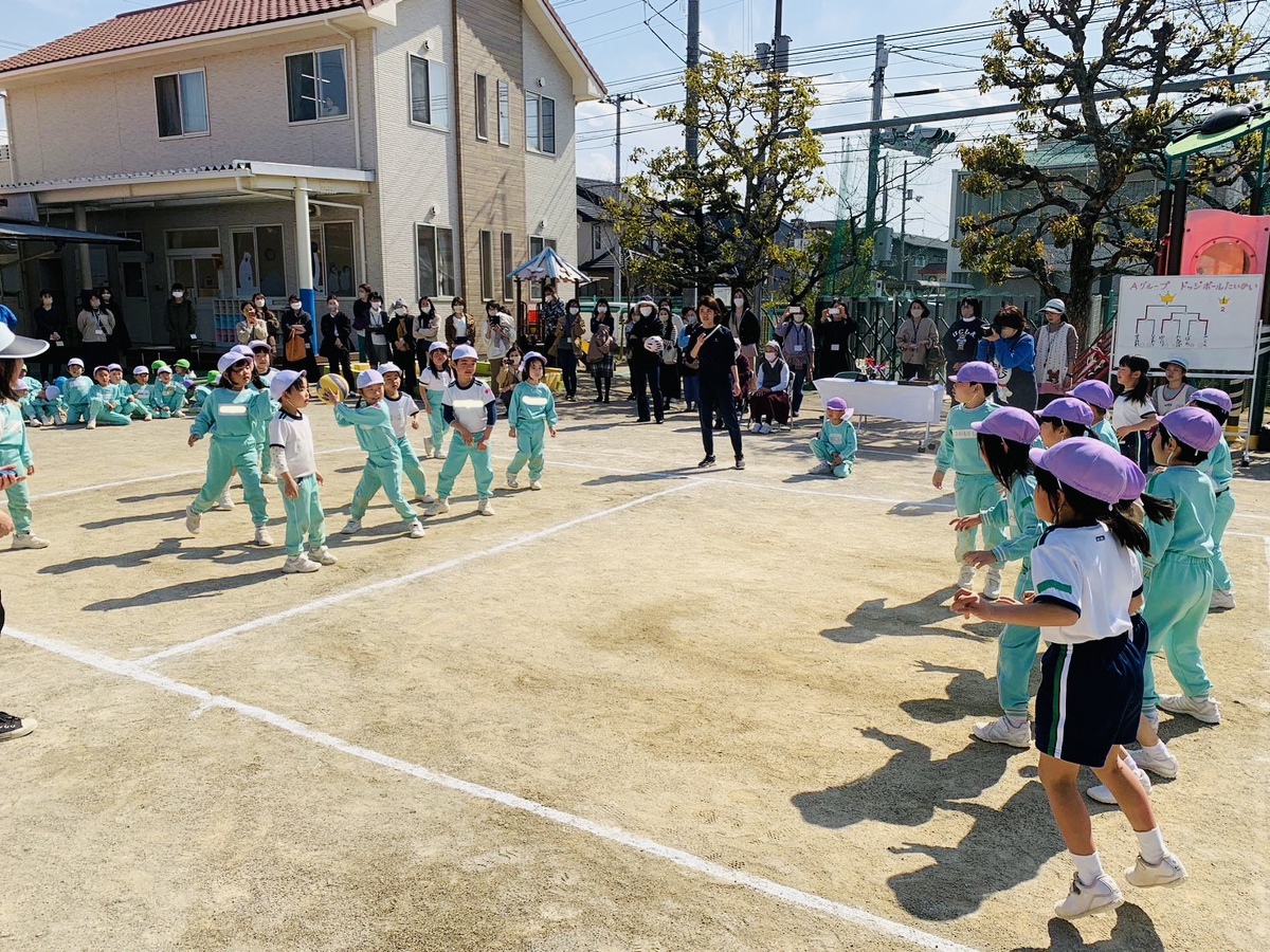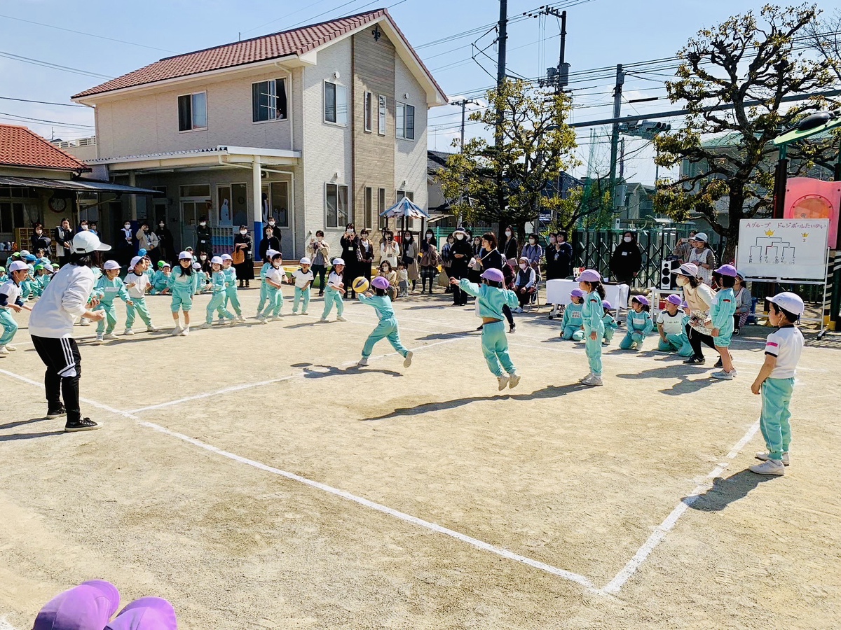 スポーツタイムが行われました。 2023年03月01日(水) Aグループ(5歳児)がスポーツタイムでドッジボール大会を行いました。クラスの仲間とどうしたら勝てるか作戦を立てたり、外遊びでたくさんドッジボールをしたりと、本番に向けて力を付けてきました。悔しい気持ちや嬉しい気持ちを感じながら、仲間と共に楽しみました。